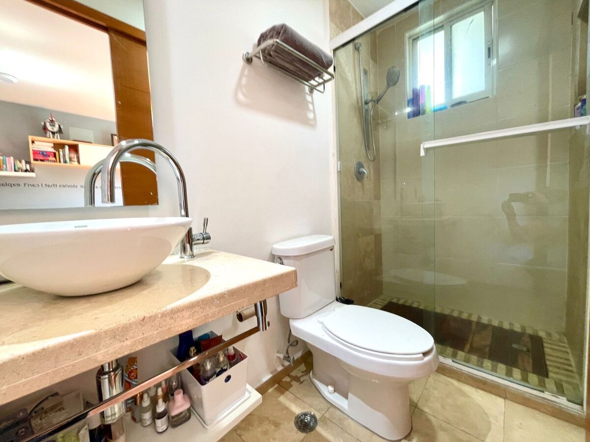 En el primer nivel del departamento se encuentra la cocina Integral "Quetzal", medio baño para área social, alacena de buen tamaño, cuarto de lavado y su sala y comedor, todo esto con piso de loseta, en el segundo nivel se encuentran las dos recamaras con walk in closet con piso laminado, cada una con su baño completo con cancel de cristal y piso de loseta, asi como un closet de blancos, en el tercer nivel se encuentra el RG propio con asador, fregadero y macetas, área con instalación para televisión y sillones