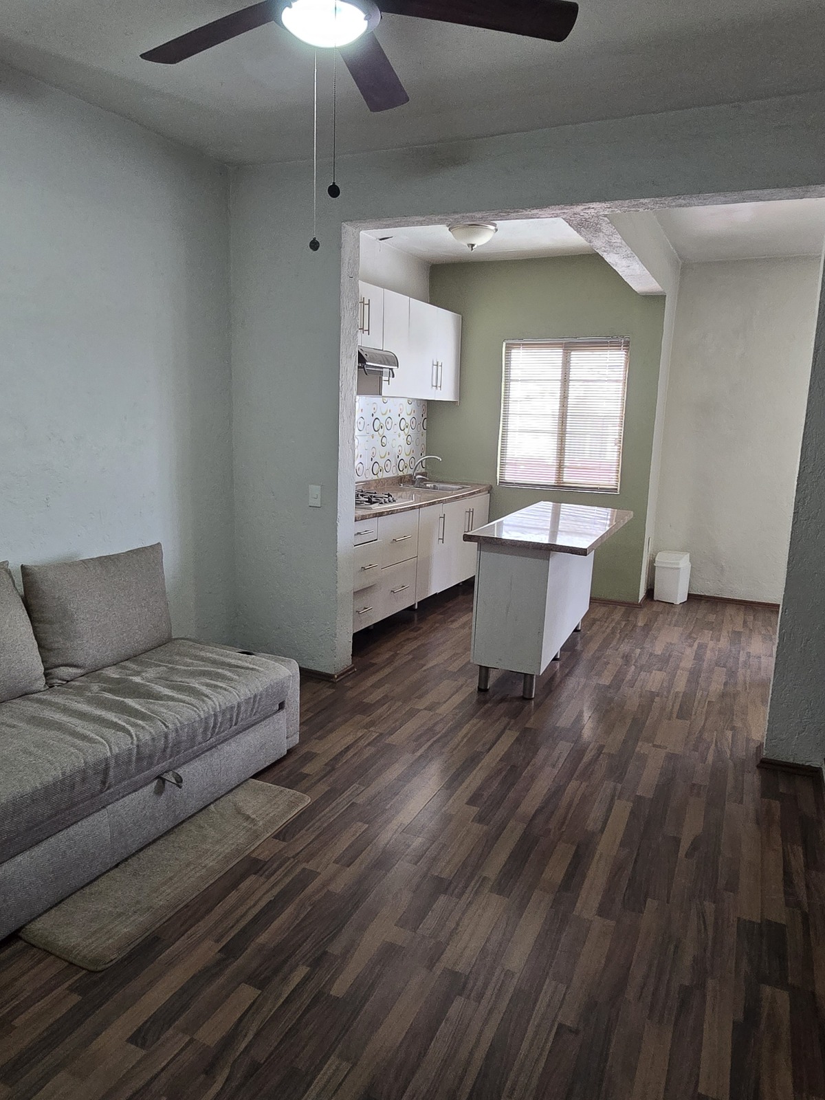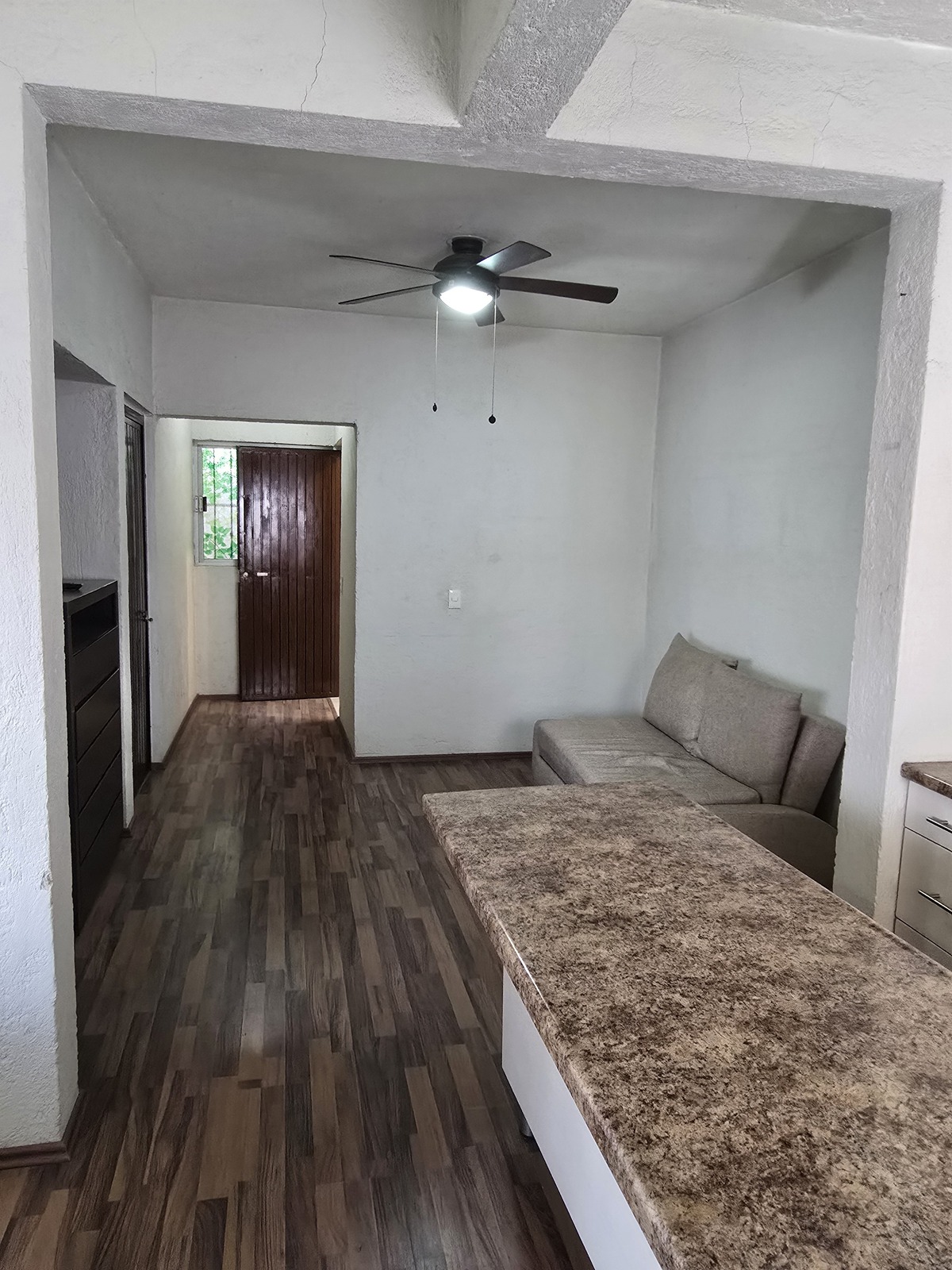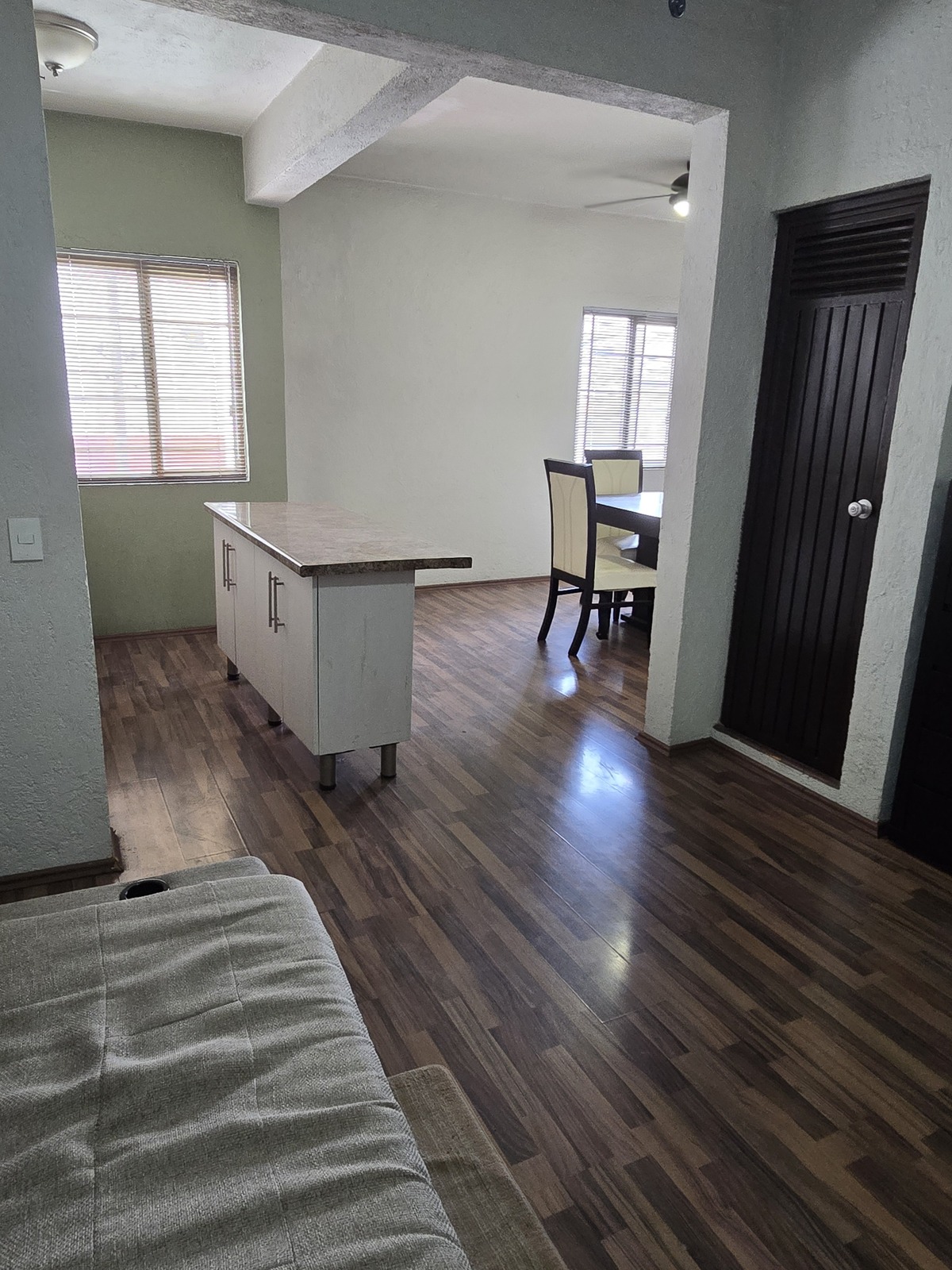 **Cuenta tambien con un departamento con piso laminado, cocina integral, aire acondicionado, 1 recamara, 1 baño completo, area de almacen,al frente de la propiedad con entrada independiente a la bodega.**
