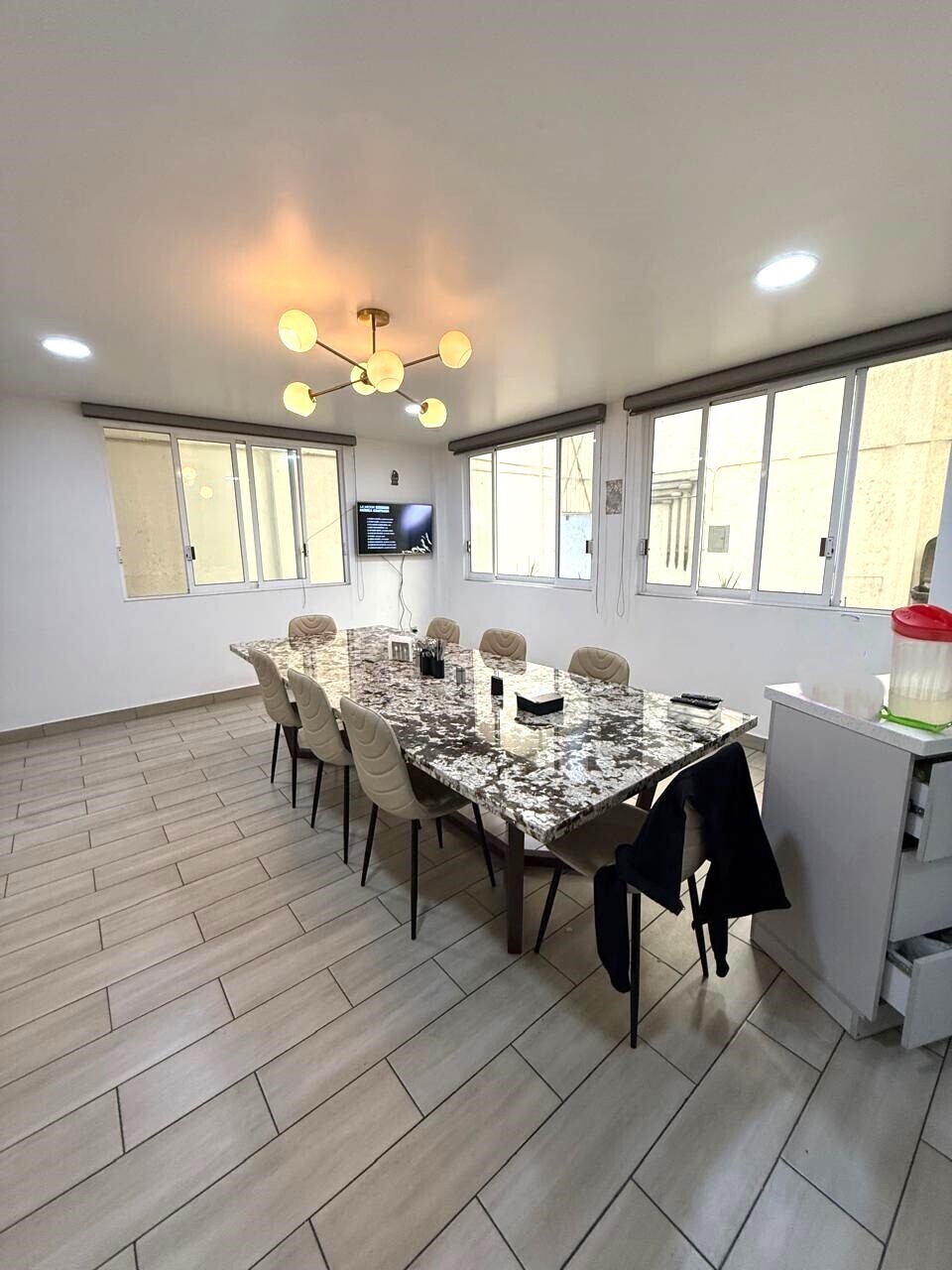 Zona de oficinas 6 perfectamente acondicionadas para 200 empleados, comedor de empleados, baños para hombres y otro para damas, caseta de vigilancia, planta de luz y luz trifásica.
