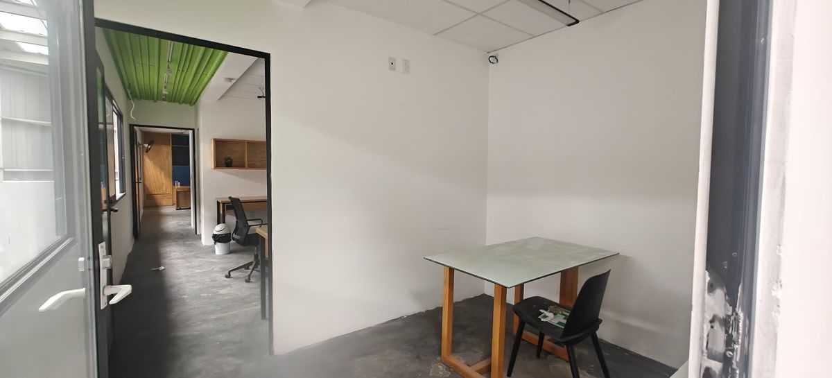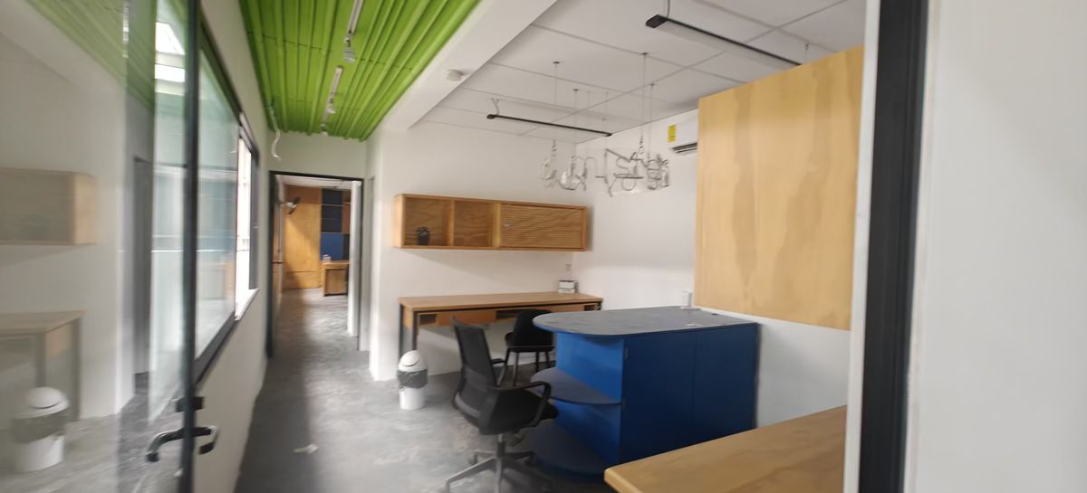 Oficinas principales sección 1 ~200 m² con 4 cubículos, sala de juntas, comedor