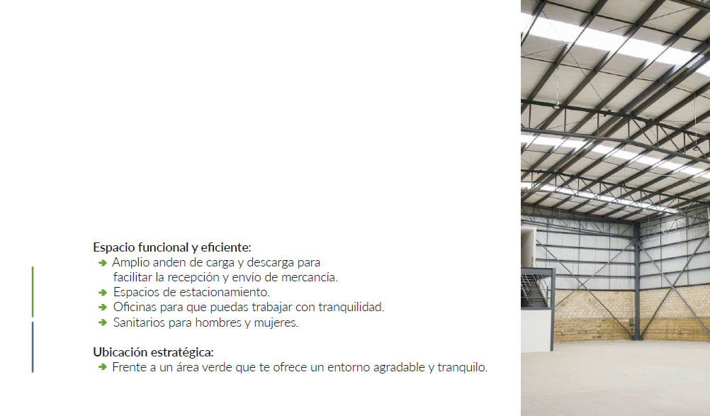 - Amplio anden de carga y descarga para facilitar la recepción y envío de mercancía.