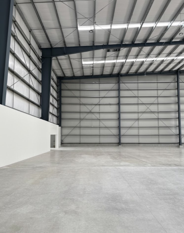Altura de entre 7.2 m y 11 m, pisos de concreto hidráulico MR38, aislante térmico, extractores de aire, iluminación LED y techos con láminas traslúcidas. Cada bodega incluye 3 cajones de estacionamiento, sistema contra incendios, cámaras CCTV y vigilancia 24/7.