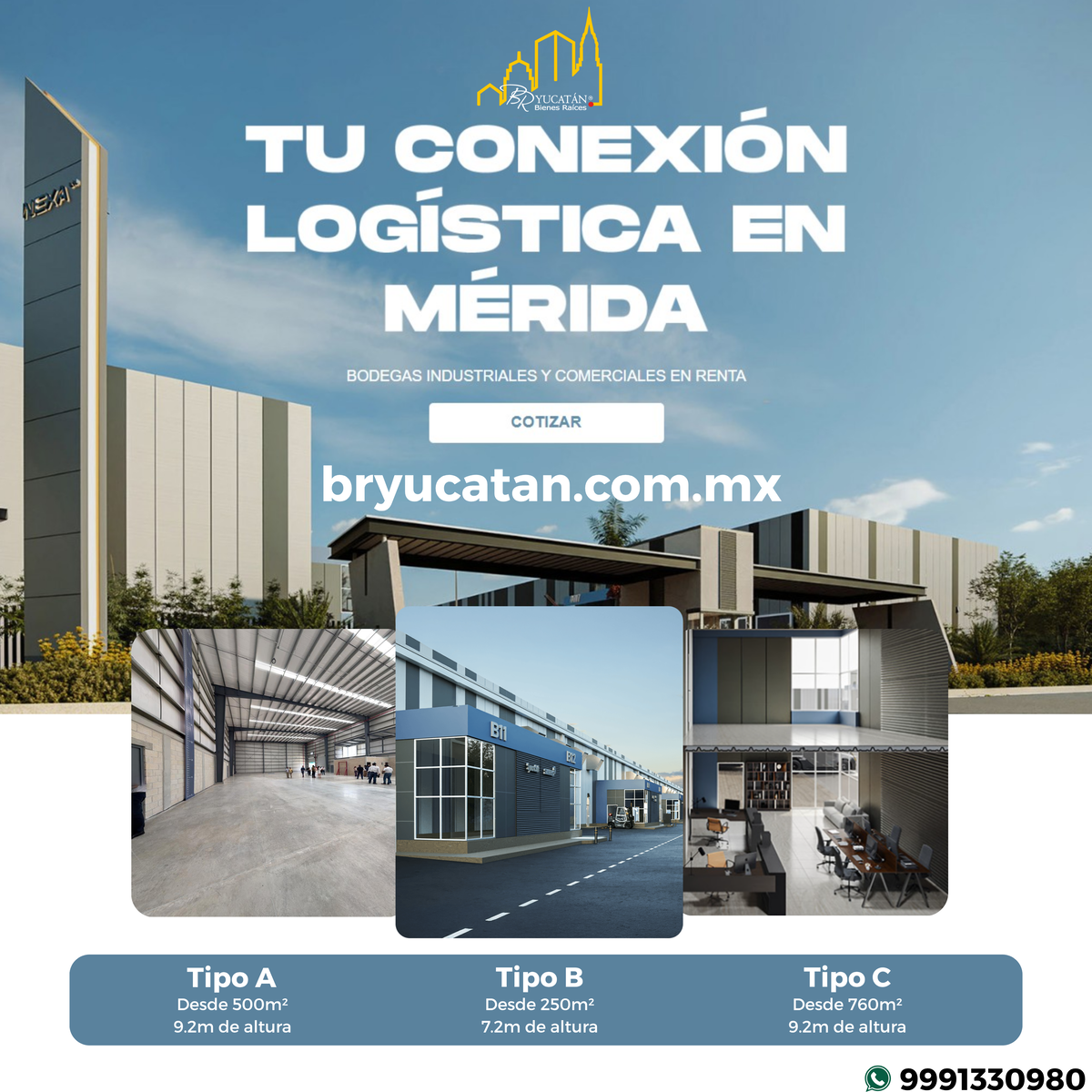 BODEGAS EN RENTA MÉRIDA, PARQUE INDUSTRIAL PONIENTE, UBICACIÓN ESTRATÉGICA