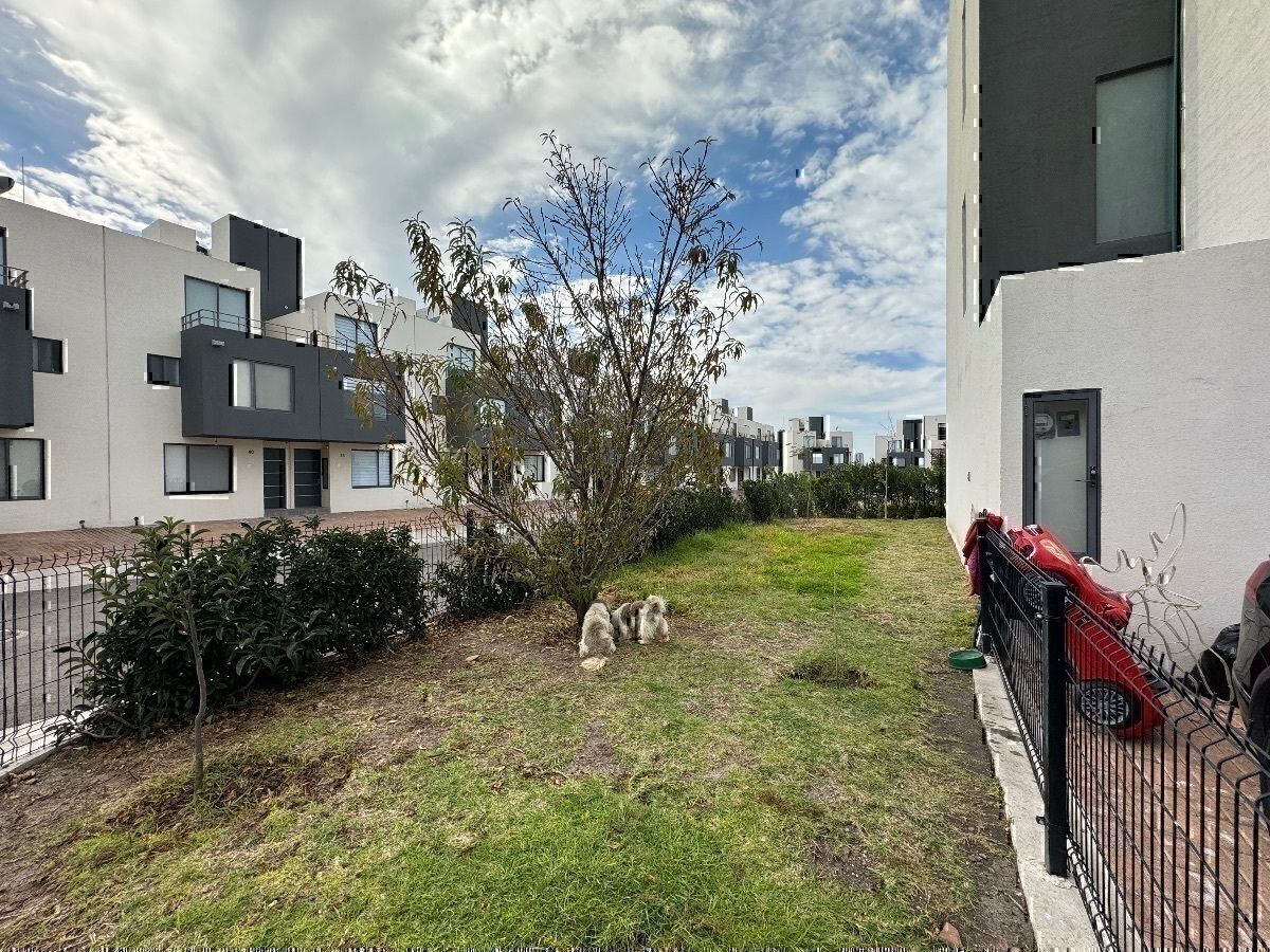 * Acceso al jardín lateral y jardín trasero que conecta con las amenidades.