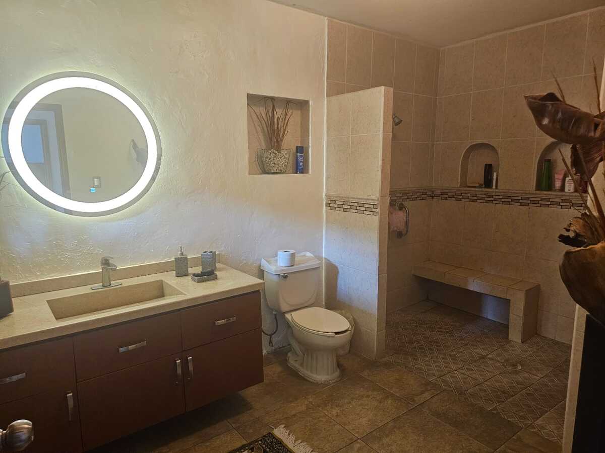 -Planta baja: Cochera para 2 vehículos, sala, comedor, estancia con bonita iluminación natural, cocina integral con barra desayunadora, patio de servicio techado con acceso a cochera, recámara con amplio clóset, un amplio baño completo sin escalones (ideal para personas con movilidad reducida), patio central abierto con acceso a la azotea.
