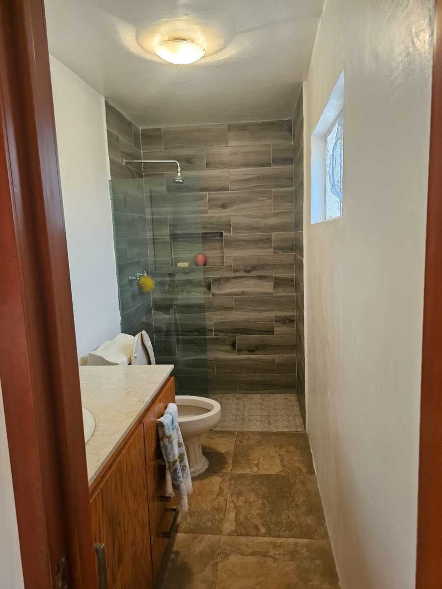 Planta alta: un baño completo, 2 recámaras, una de ellas con closet, azotea o pequeña terraza y un cuarto pequeño que puede ser una bodega, cuarto de servicio o área de gimnasio.