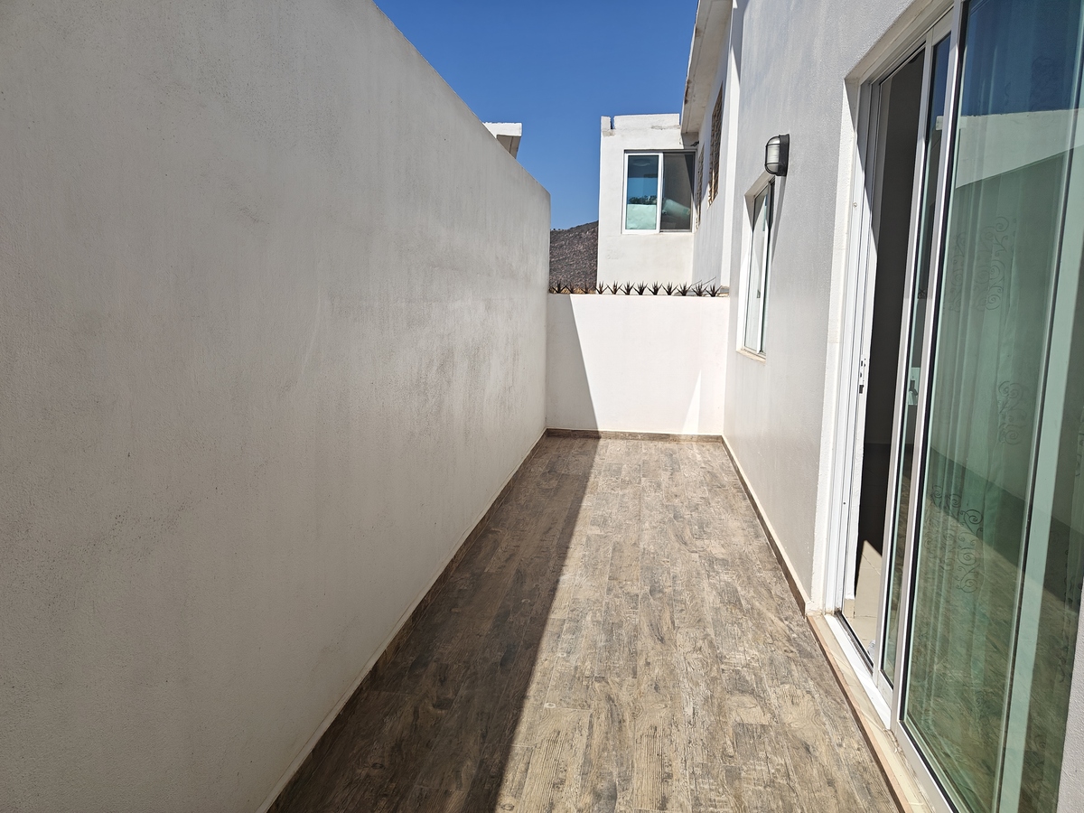 La casa tiene un pequeño patio con acceso por el área del comedor y un pasillo lateral de la casa, área de lavado y secado, garage abierto para 2 autos. Área común con alberca y asador solo para residentes, la entrada a la privada es por medio de puerta eléctrica.