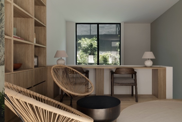Villa Ahuehuetes propone una arquitectura interior honesta, acogedora y elegante.
