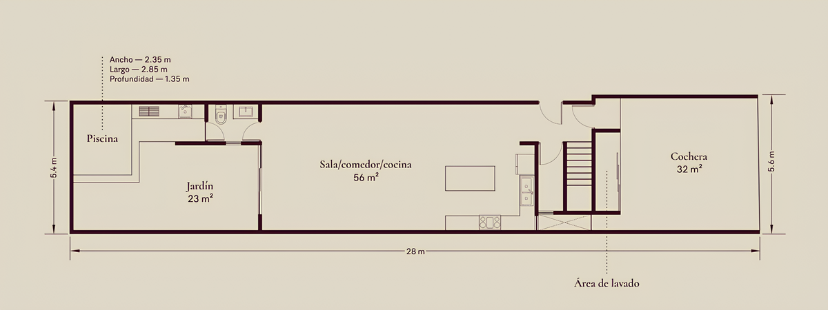 Jardín con piscina