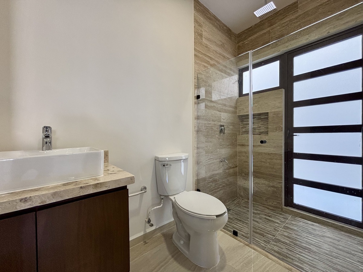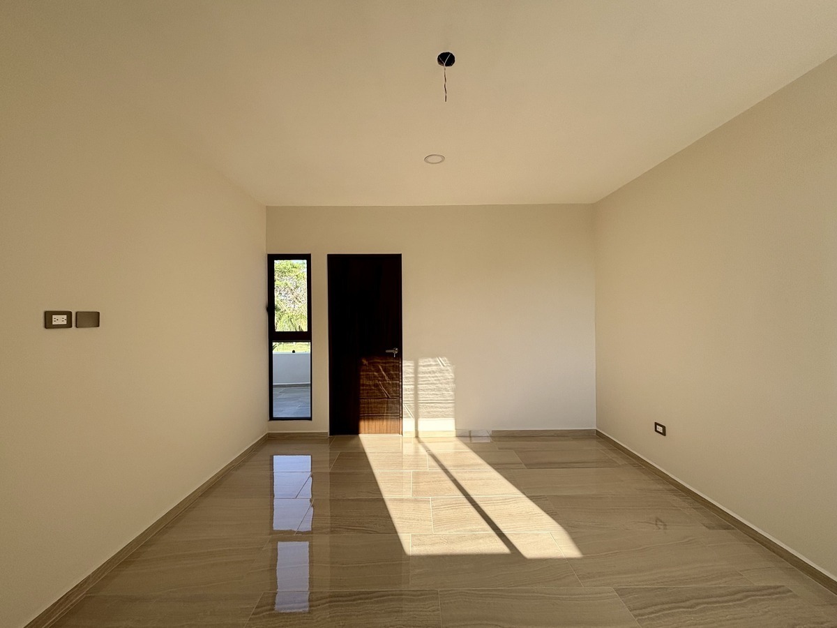 Recámara principal amplia con área para closet vestidor, baño, terraza trasera con vista a la piscina