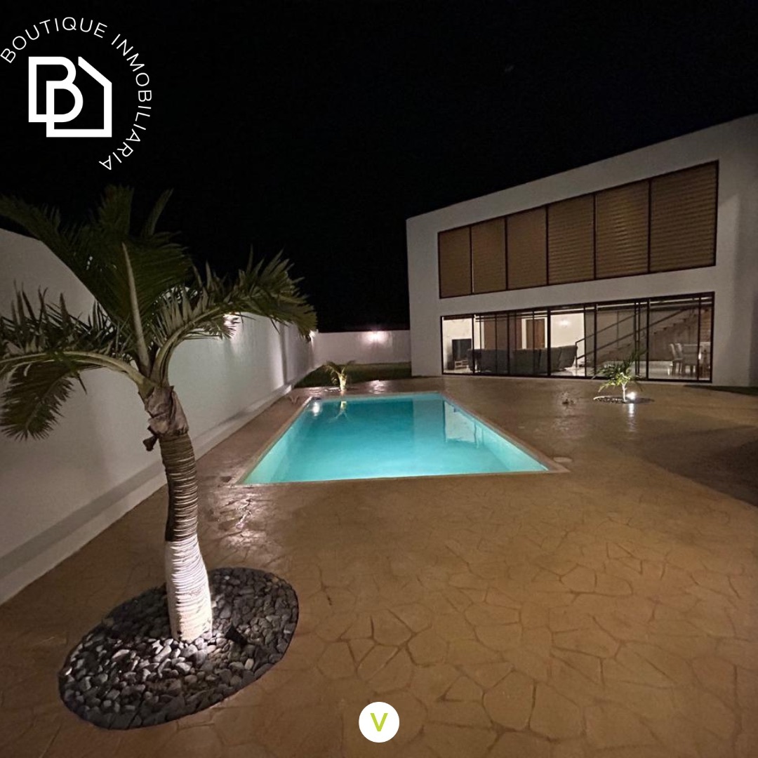 Alberca con acabado Chukum con luz multicolor y sistema de filtrado.