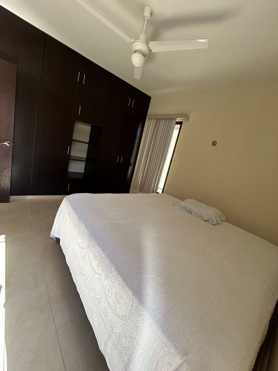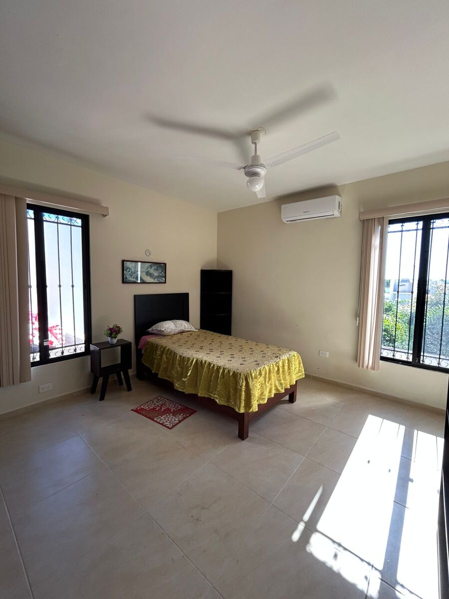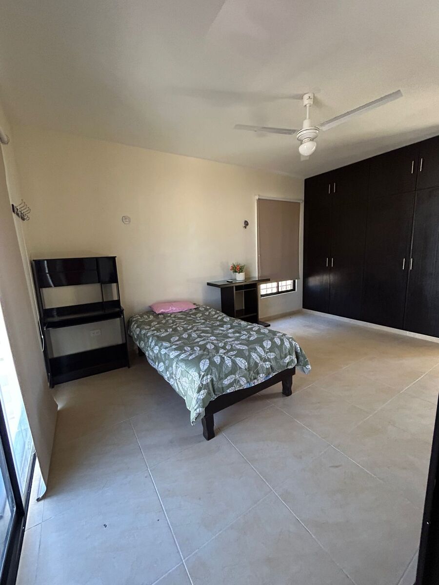 - Recámara con closet, aire acondicionado, ventilador, cama individual, persianas, mueble de tv.