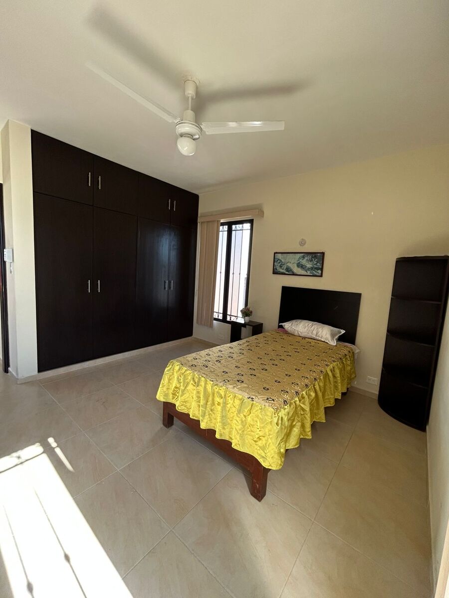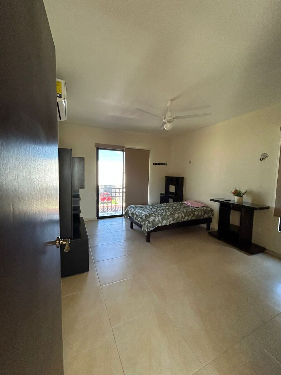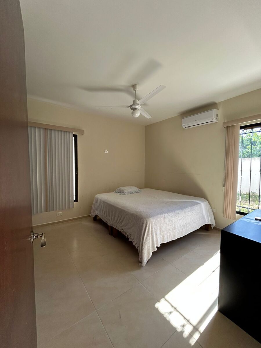 - Recámara con closet, aire acondicionado, ventilador, cama individual, persianas, mueble de tv.