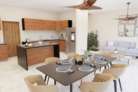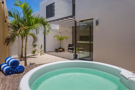 Esta actualizada villa de 3 habitaciones y 2.5 baños tiene todo lo que pueda desear en una casa de vacaciones o una residencia permanente. Cuenta con una amplia sala de estar, un comedor funcional y una cocina totalmente equipada con un pasillo con bancos de bar, electrodomésticos de acero inoxidable de alta calidad y un sistema de filtración de agua por ósmosis inversa conectado al refrigerador, garantizando acceso a agua limpia y purificada. La habitación principal tiene un balcón y un lujoso baño en suite con bañera y tocador doble. Suficiente espacio de almacenamiento en la cocina y armarios en las habitaciones hacen que esta casa sea cómoda para la vida diaria y fácil para sus huéspedes de vacaciones. Tiene un patio trasero, una escalera al techo y estacionamiento. La propiedad está completamente amurallada, ofreciendo una maravillosa sensación de seguridad y privacidad para usted y sus huéspedes. También hay una gran alberca comunitaria y una palapa de entretenimiento cercanas.