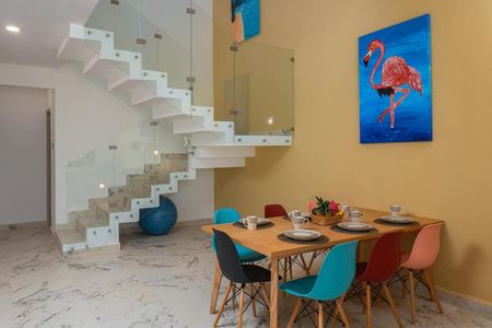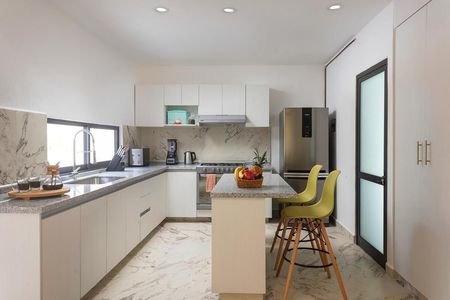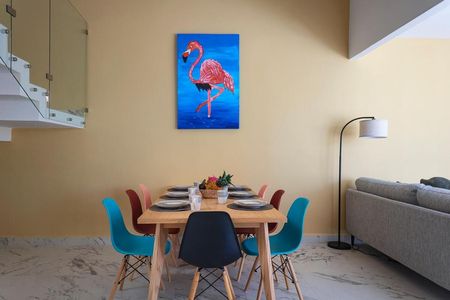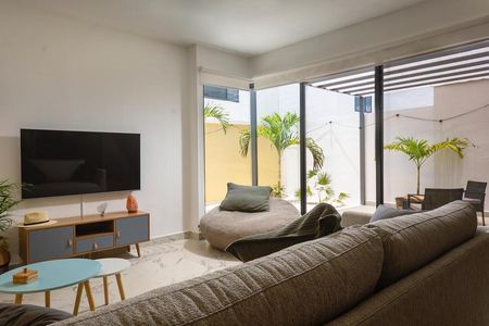 Esta villa de 2 pisos llena de luz solar se encuentra en un tranquilo callejón sin salida en la comunidad cerrada de El Encuentro en Playa del Carmen. Ubicada justo al norte del centro de la ciudad, este desarrollo residencial seguro ofrece exclusividad y privacidad, pero también fácil acceso a playas fantásticas. Esta zona está a un corto trayecto en automóvil de la mundialmente famosa Quinta Avenida y cerca de todos los servicios de la ciudad. Está idealmente situada para aprovechar todo lo que la emocionante ciudad de Playa del Carmen tiene para ofrecer, mientras aún se siente "alejado de todo".