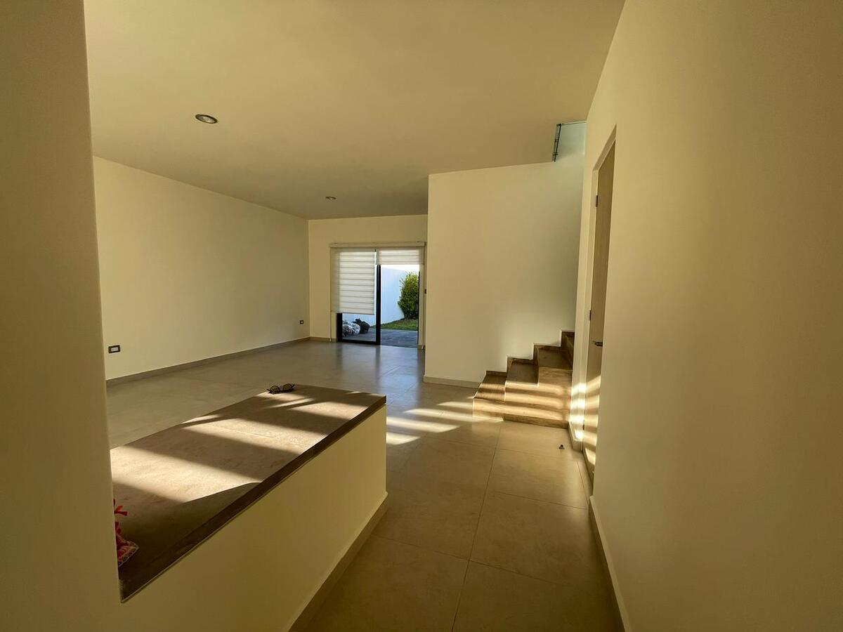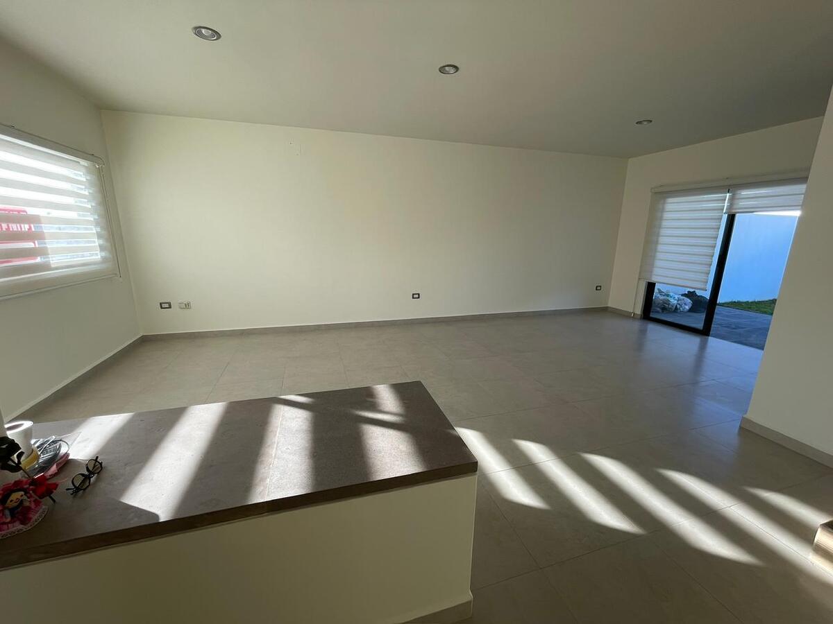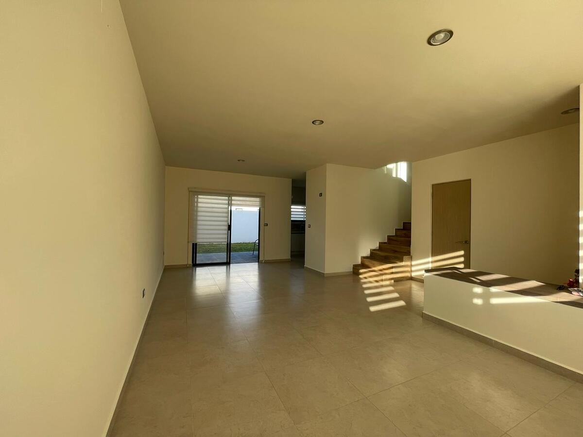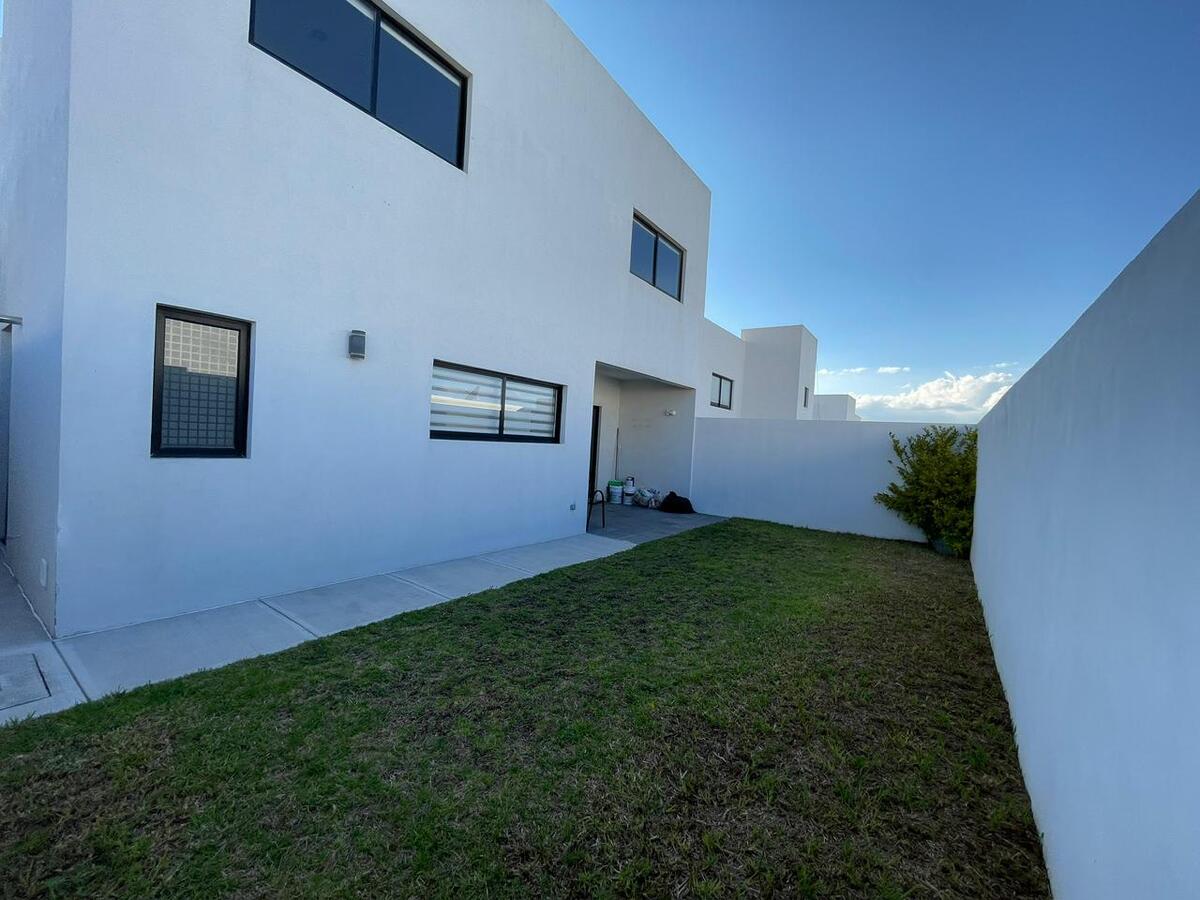 Planta alta recámara principal con baño completo Con clóset,segunda recámara y tercera con clóset y comparten baño,mueble para blancos. Planta baja cocina equipada y gabinetes al alto brillo con cajones y alacena,área de servicio amplia para electrodomésticos de línea blanca jardín de aproximadamente 40 mts2 entrada lateral al jardín una tercera recámara con baño completo,medio baño visitas, Sala y Comedor,estacionamiento 2autos. Todas las ventanas cuentan con persianas BlackOut. **Pregunta por el equipo adicional