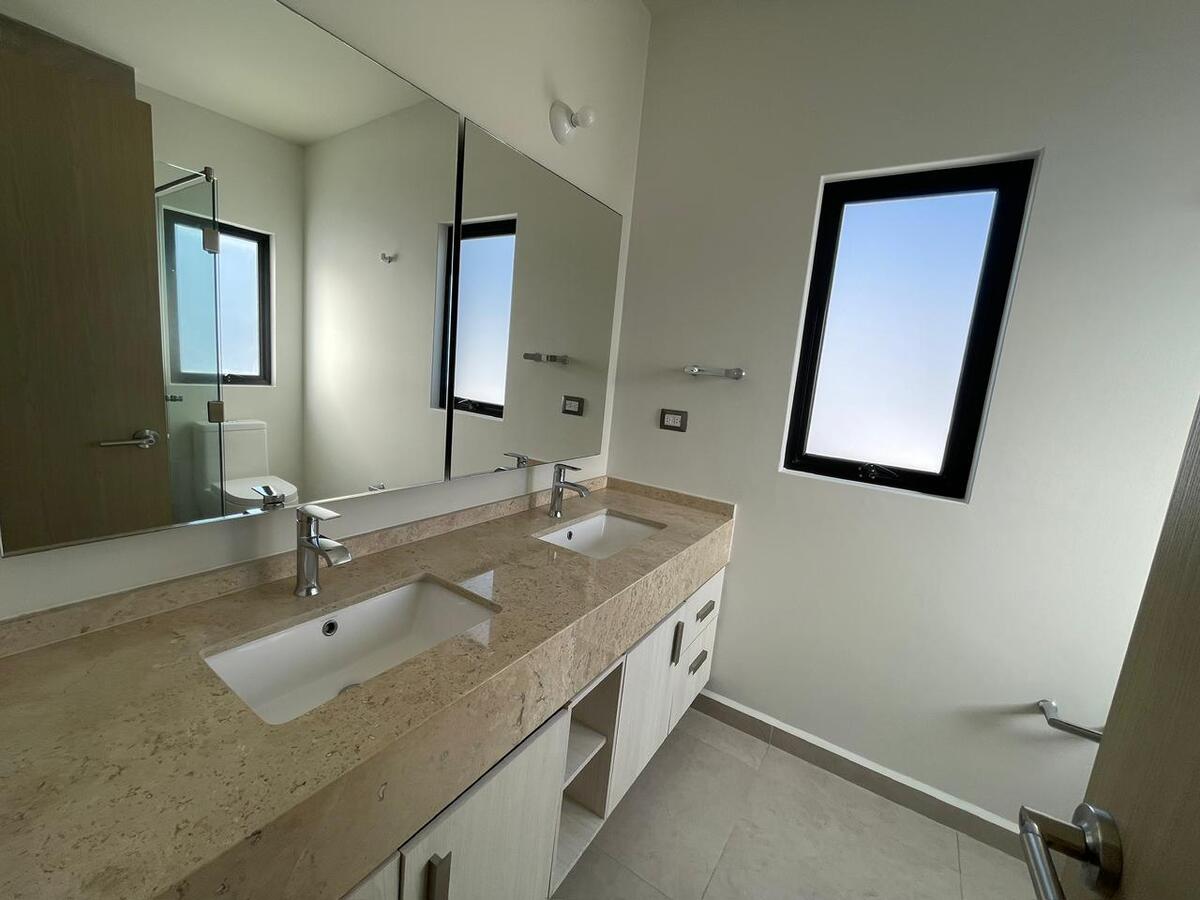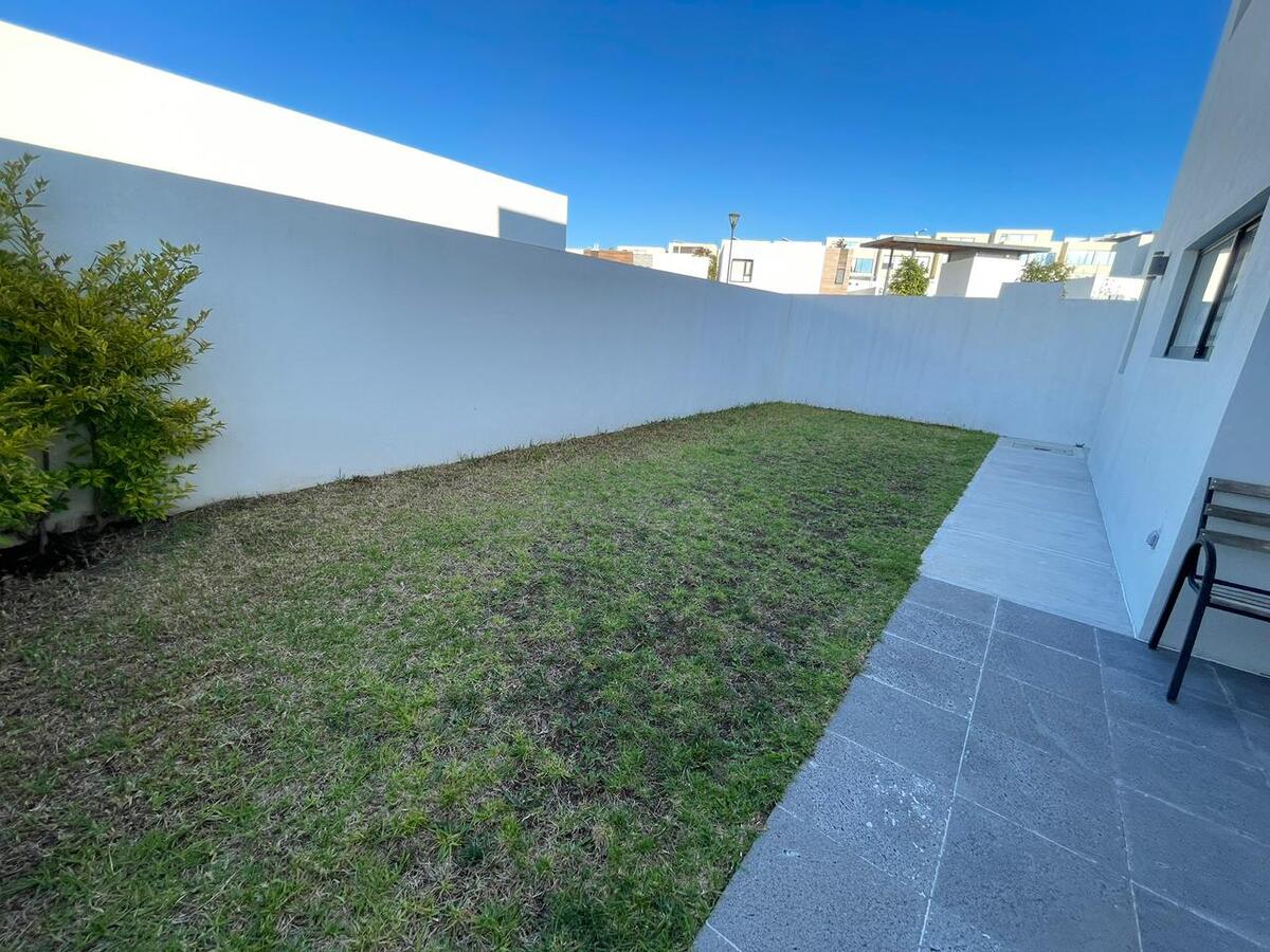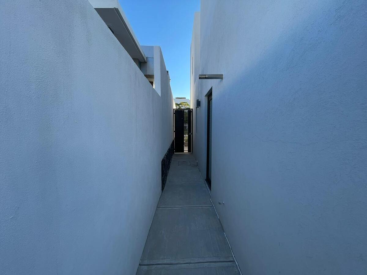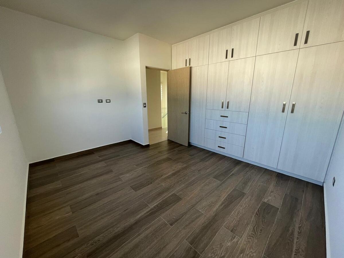 Planta alta recámara principal con baño completo Con clóset,segunda recámara y tercera con clóset y comparten baño,mueble para blancos. Planta baja cocina equipada y gabinetes al alto brillo con cajones y alacena,área de servicio amplia para electrodomésticos de línea blanca jardín de aproximadamente 40 mts2 entrada lateral al jardín una tercera recámara con baño completo,medio baño visitas, Sala y Comedor,estacionamiento 2autos. Todas las ventanas cuentan con persianas BlackOut. **Pregunta por el equipo adicional