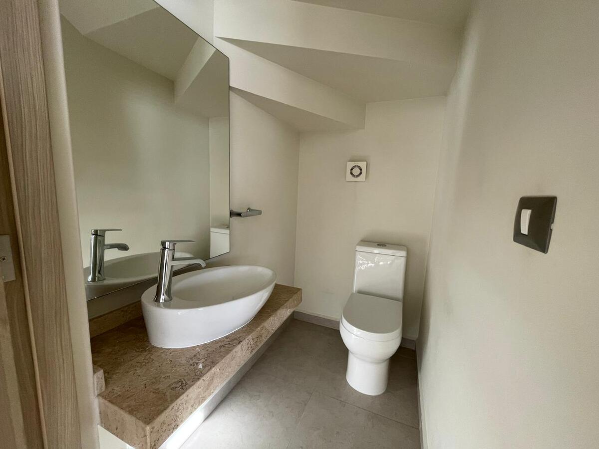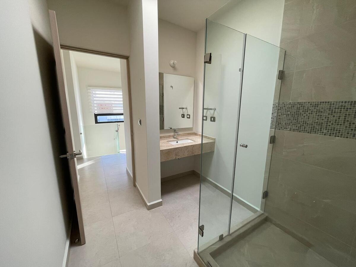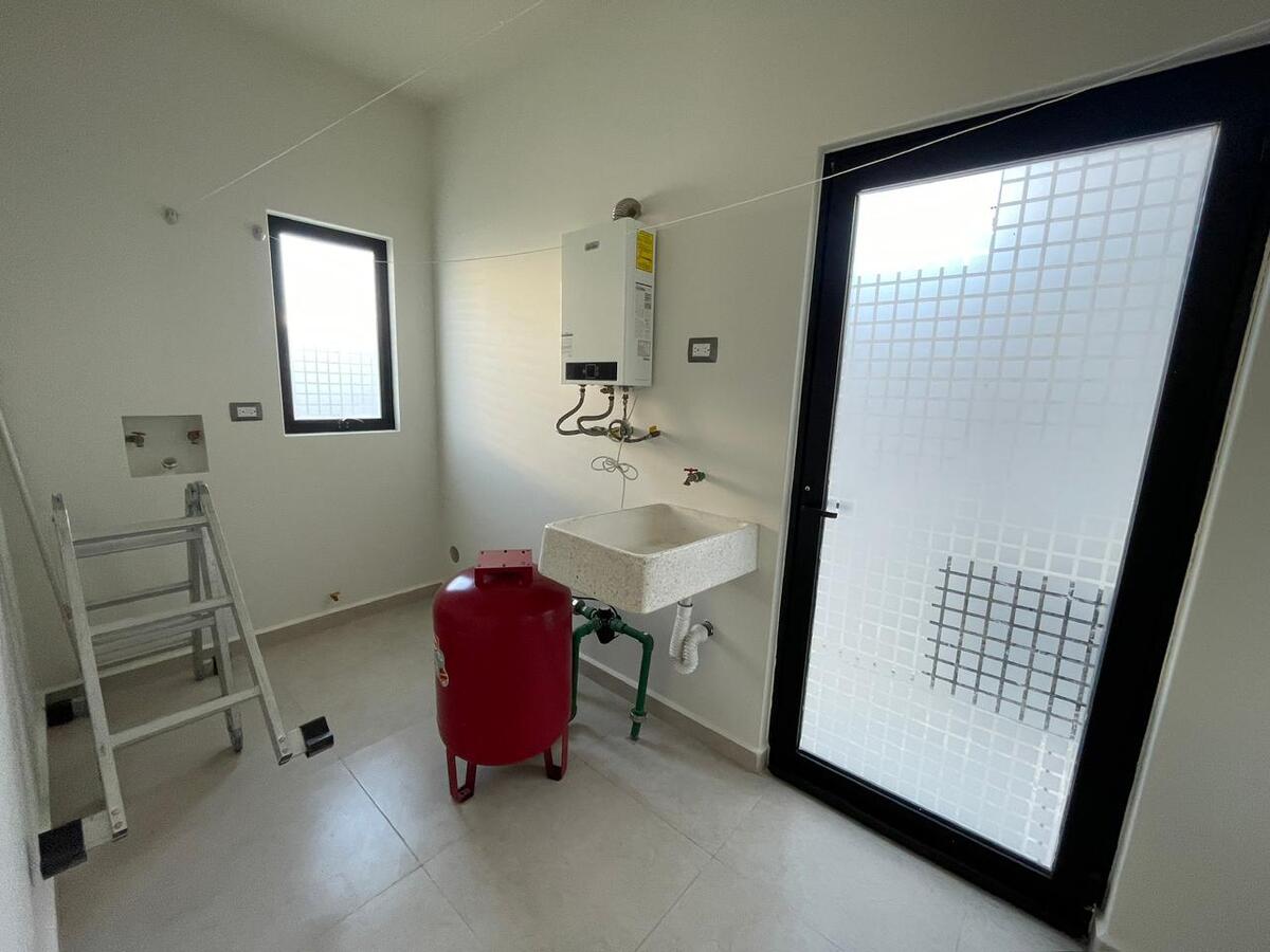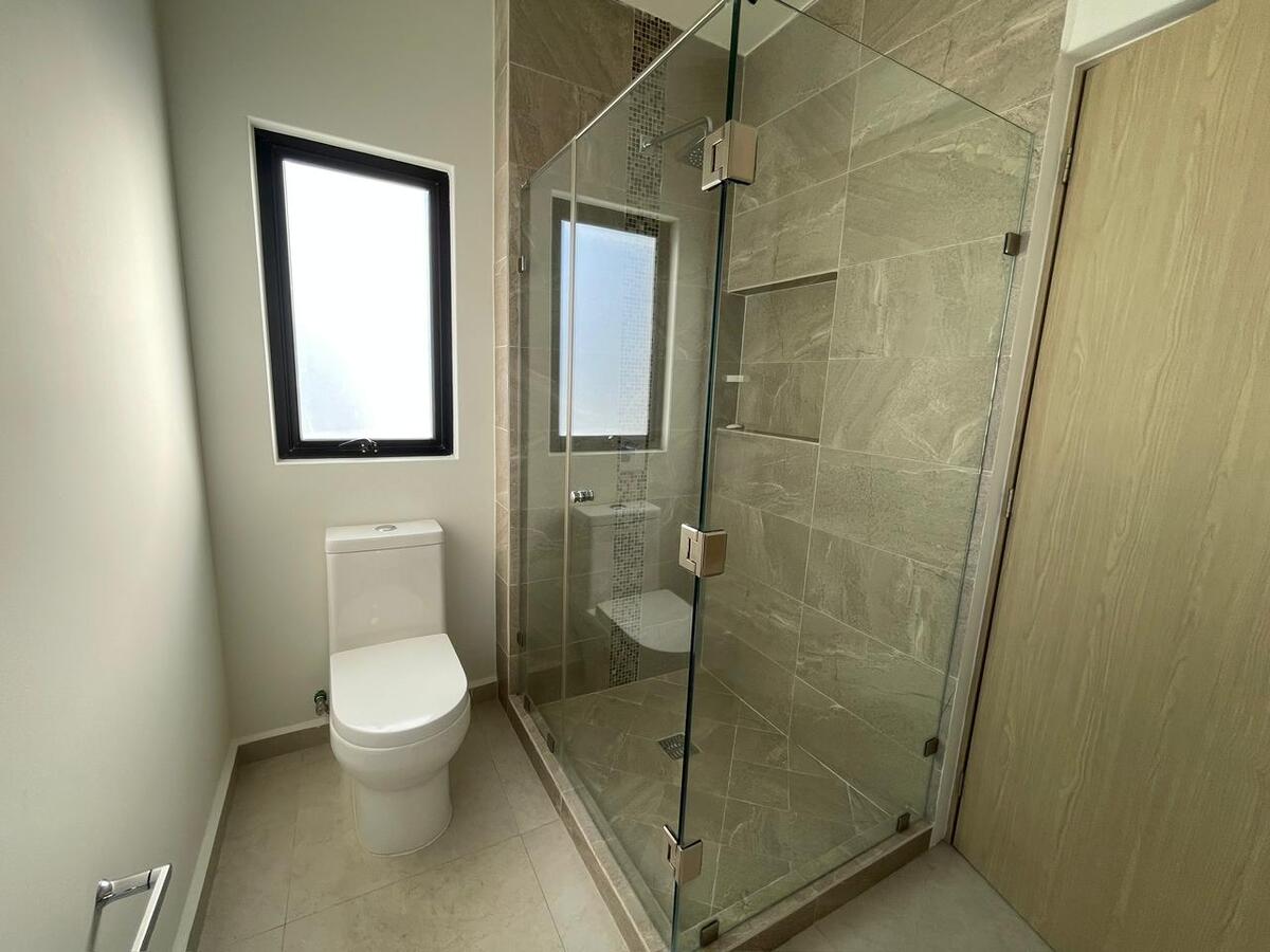 Planta alta recámara principal con baño completo Con clóset,segunda recámara y tercera con clóset y comparten baño,mueble para blancos. Planta baja cocina equipada y gabinetes al alto brillo con cajones y alacena,área de servicio amplia para electrodomésticos de línea blanca jardín de aproximadamente 40 mts2 entrada lateral al jardín una tercera recámara con baño completo,medio baño visitas, Sala y Comedor,estacionamiento 2autos. Todas las ventanas cuentan con persianas BlackOut. **Pregunta por el equipo adicional