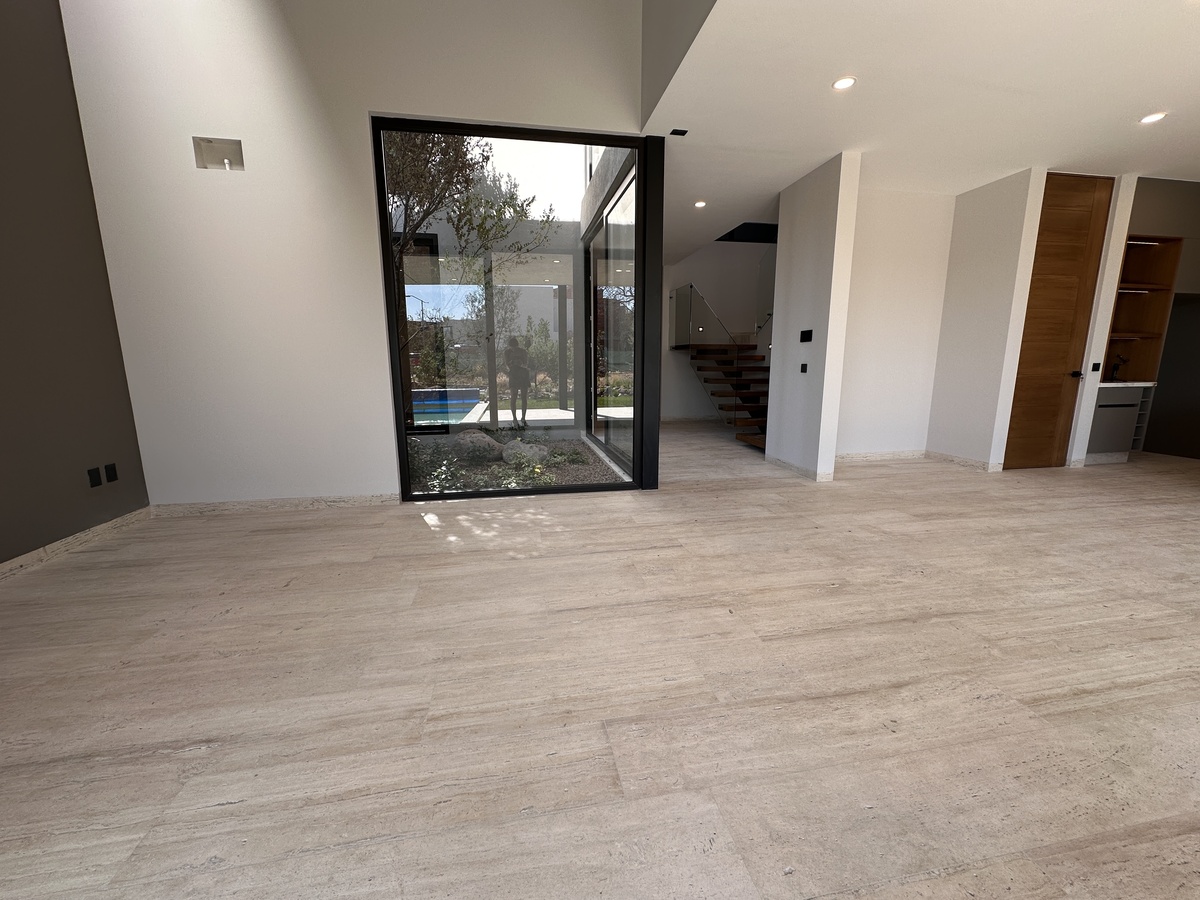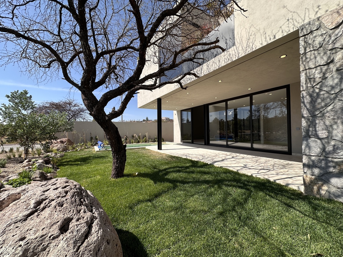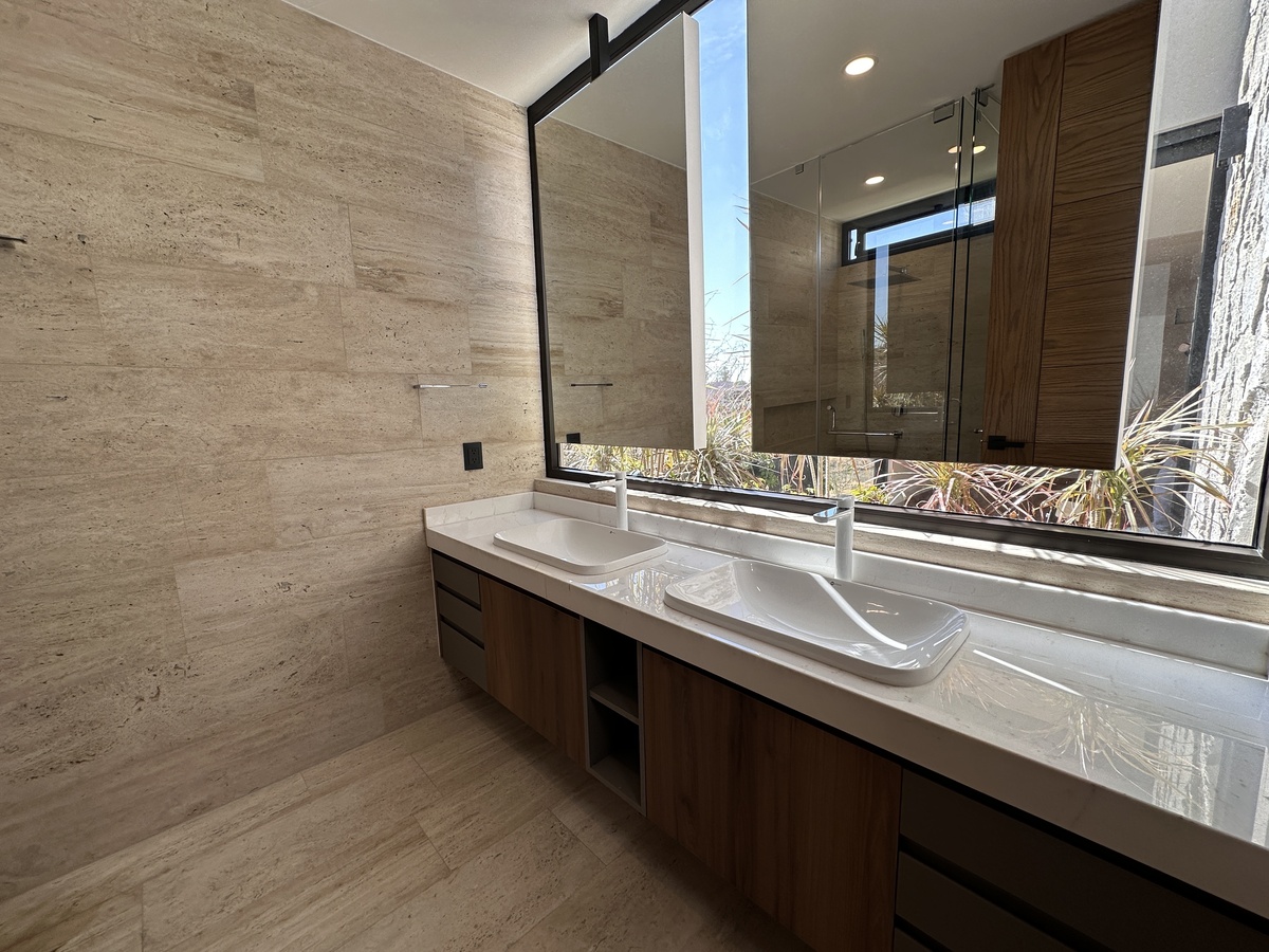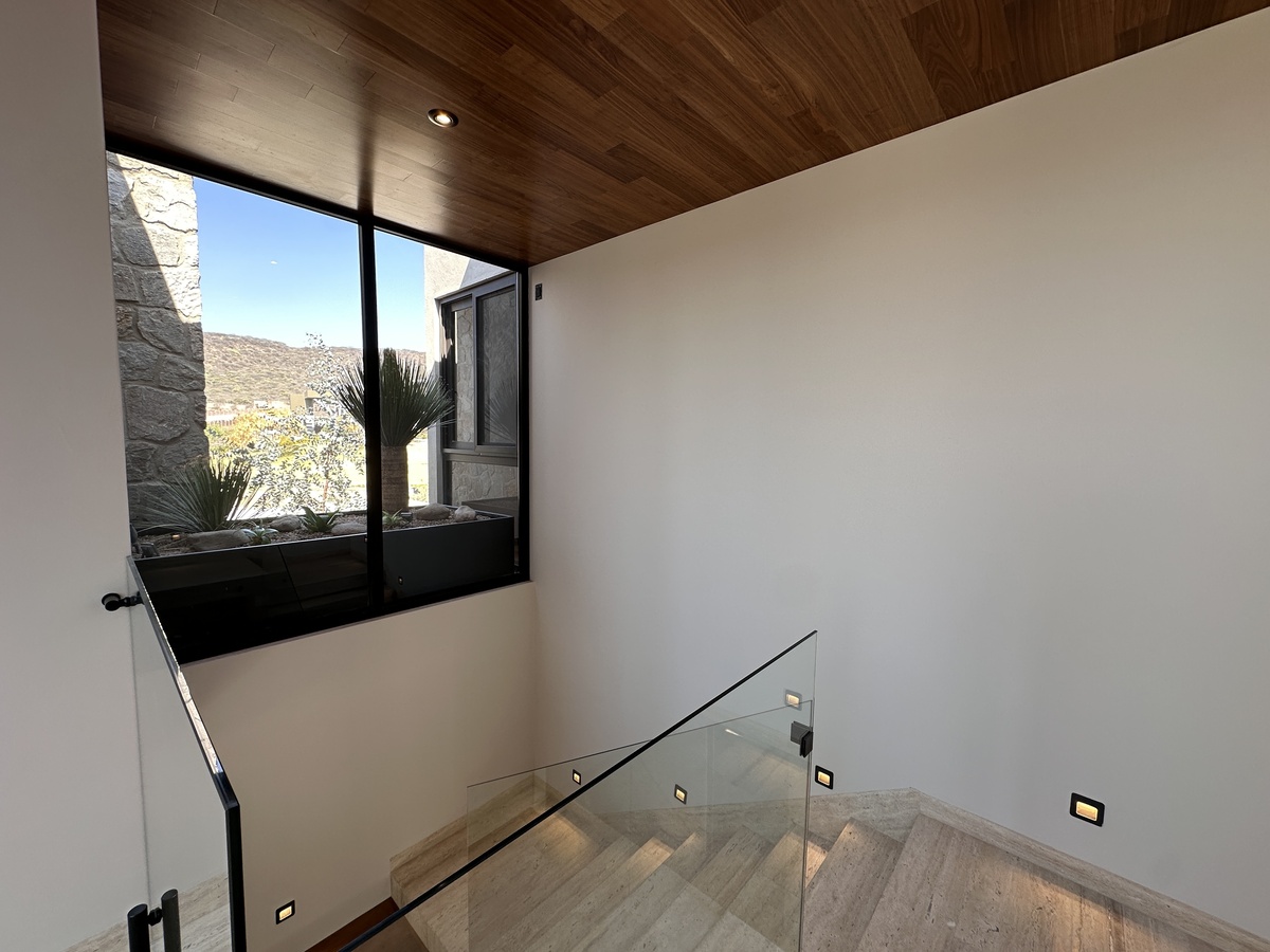 Tiene acabados de lujo y uso de piedras naturales y madera a lo largo de toda la construcción. Está totalmente automatizada con Alexa par encender luces, prender riego por aspersión y poner música.