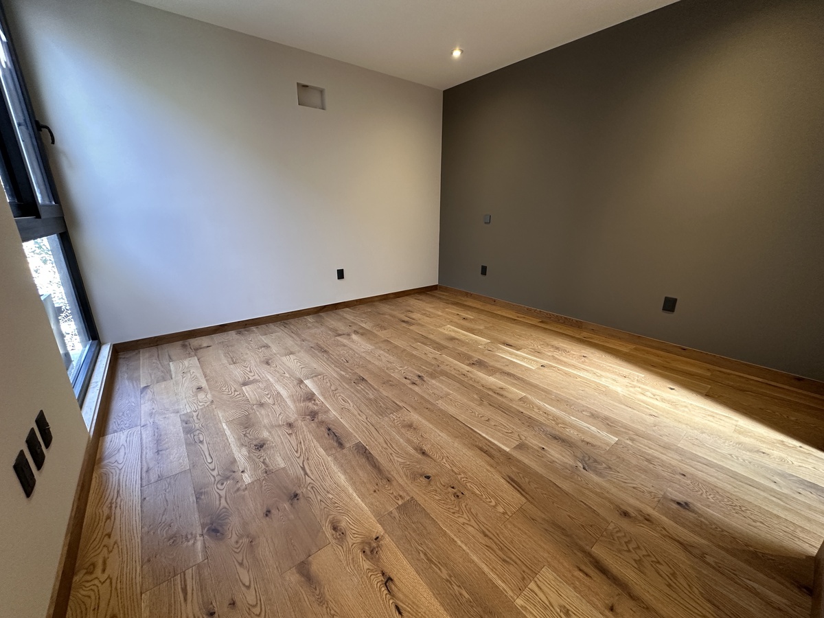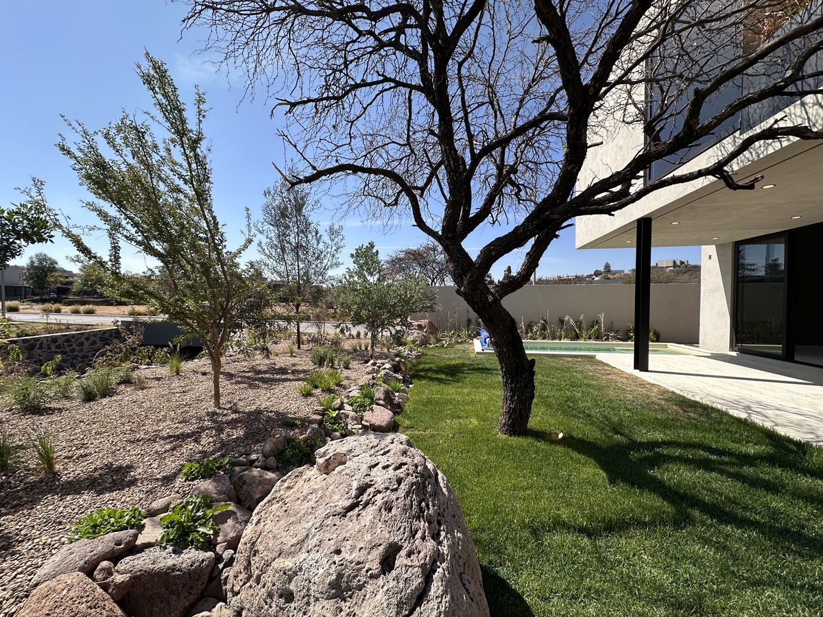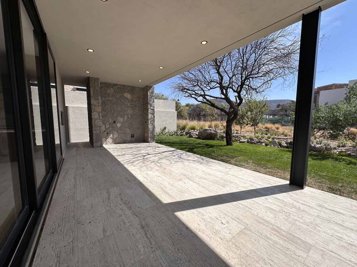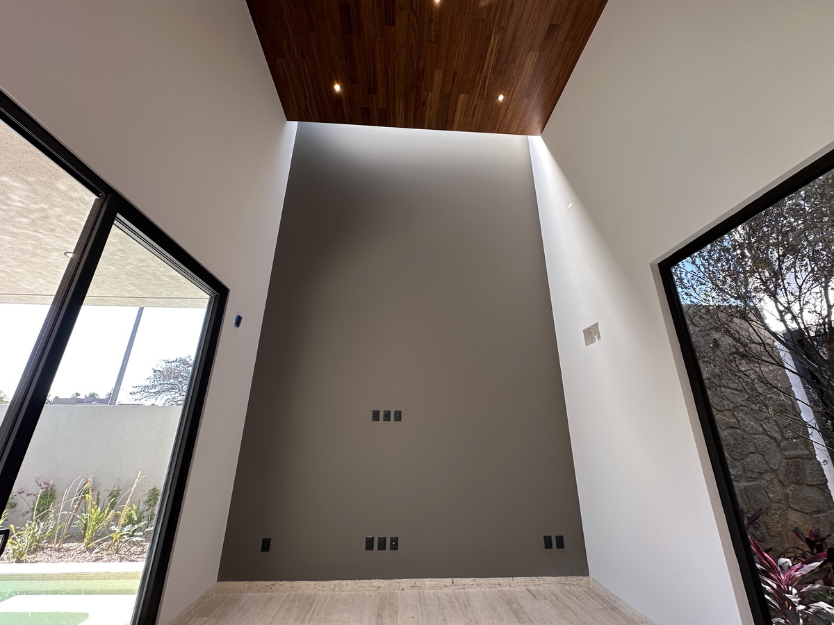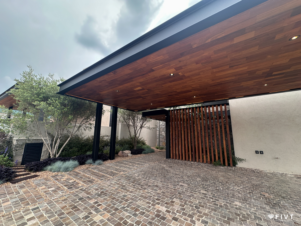 Tiene acabados de lujo y uso de piedras naturales y madera a lo largo de toda la construcción. Está totalmente automatizada con Alexa par encender luces, prender riego por aspersión y poner música.