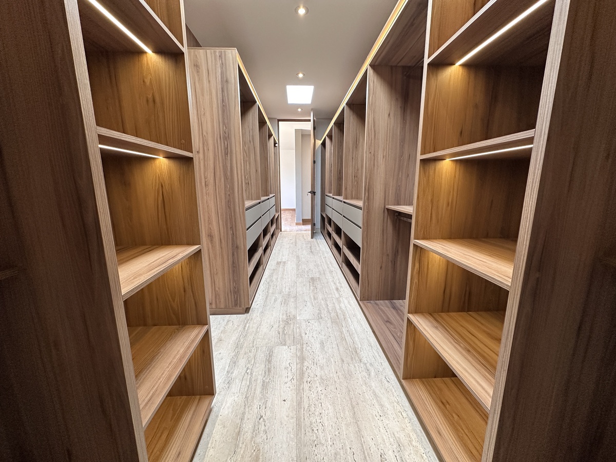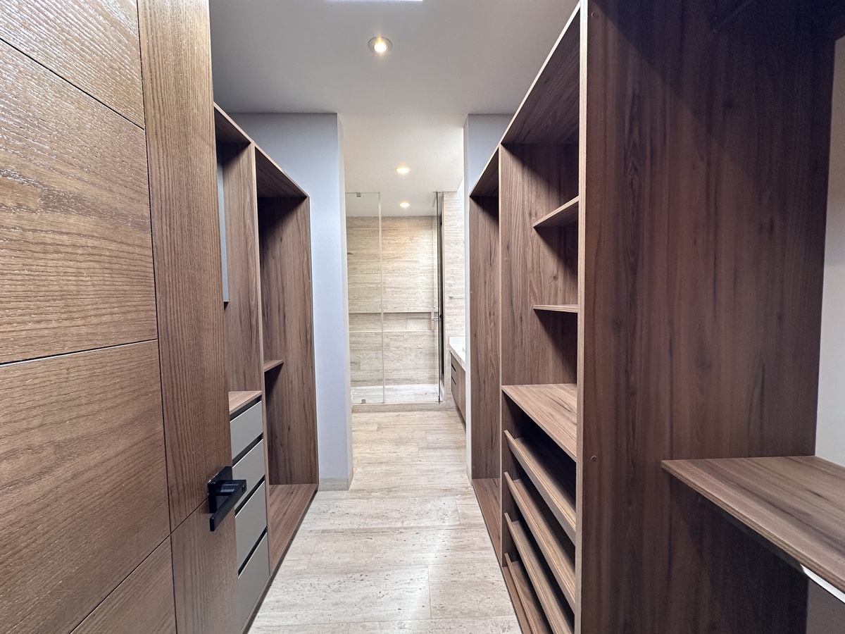 Así como dos recámaras secundarias con vestidor y baño completo cada una. También una Sala de TV.