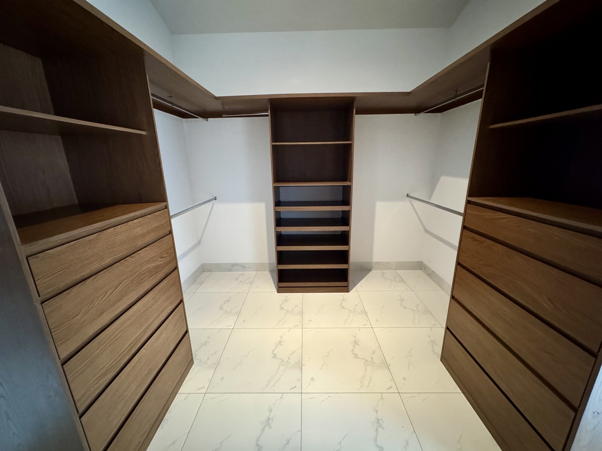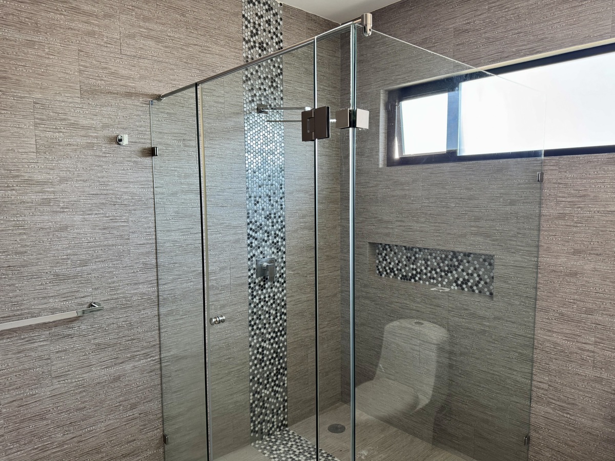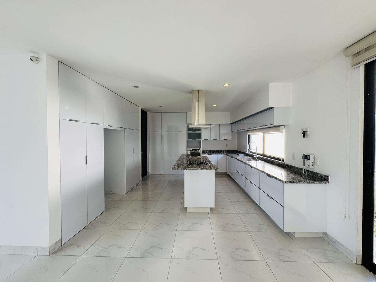 Planta alta: Habitación principal con baño y vestidor, 2 habitaciones con closet y baño compartido, sala de TV, closet de blancos