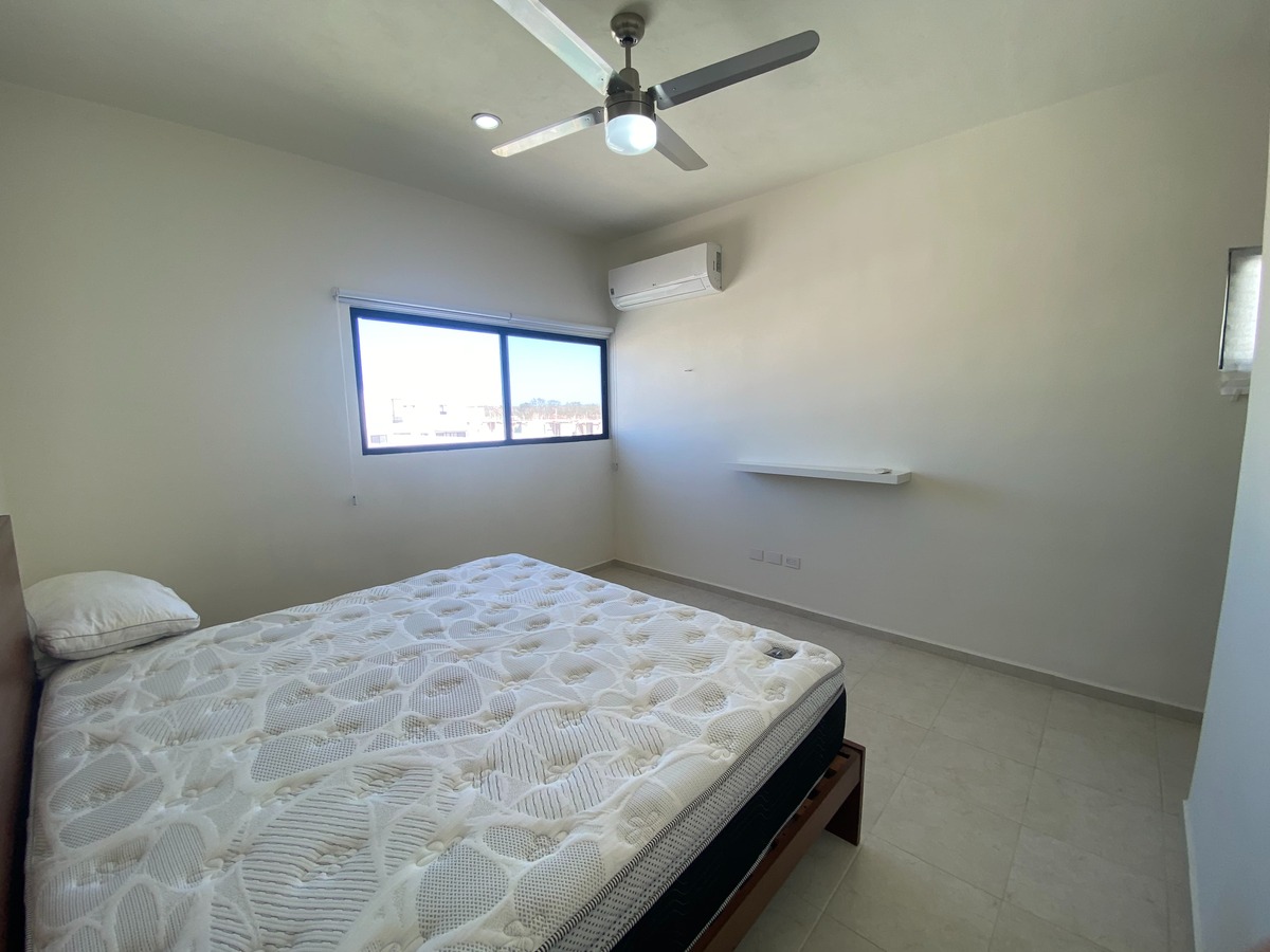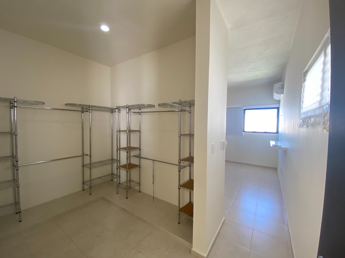 Recámara con aire acondicionado inverter, ventilador, closet vestido y baño