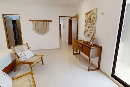 -Habitación principal con baño completo, doble lavabo, jacuzzi con hidromasaje y acabado chukum, cancelería de cristal templado en regadera, ventilador de techo y minisplit inverter de 1 tonelada.