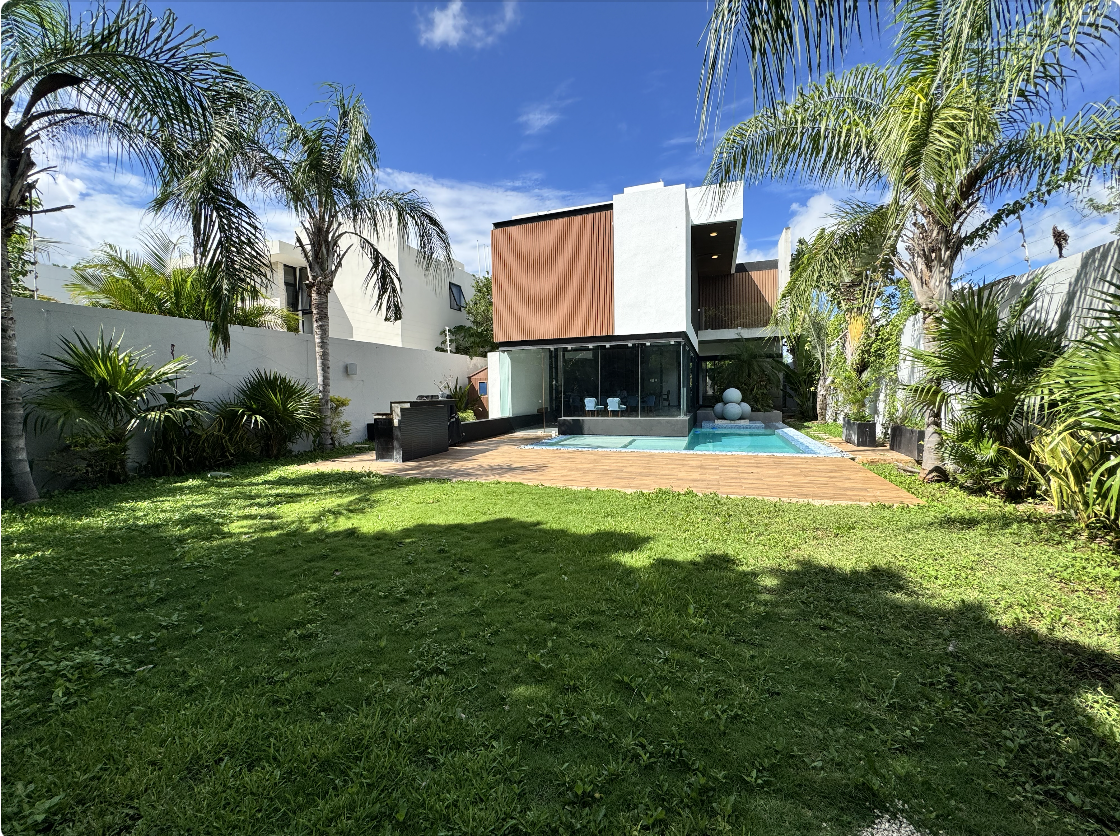 * Planta Baja: Cocina completa con refrigerador dúplex y herrajes Blum. Sala con área de bar y cine en casa. Comedor formal. Cuarto de servicio con baño. Piscina con filtro y Jardín amplio con árboles maduros. Área de asador.