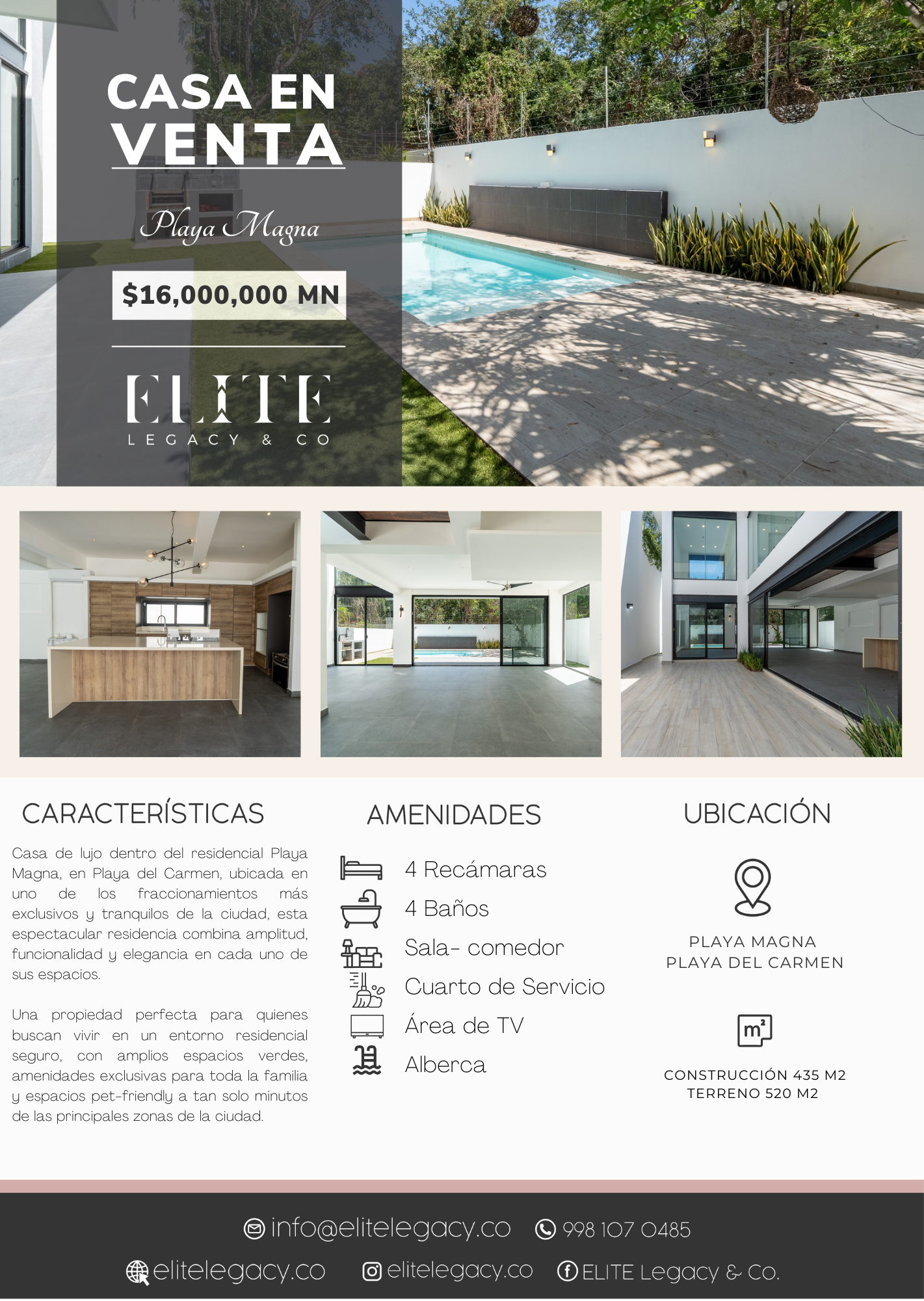 Casa de lujo dentro del residencial Playa Magna, en Playa del Carmen, ubicada en uno de los fraccionamientos más exclusivos y tranquilos de la ciudad, esta espectacular residencia combina amplitud, funcionalidad y elegancia en cada uno de sus espacios.