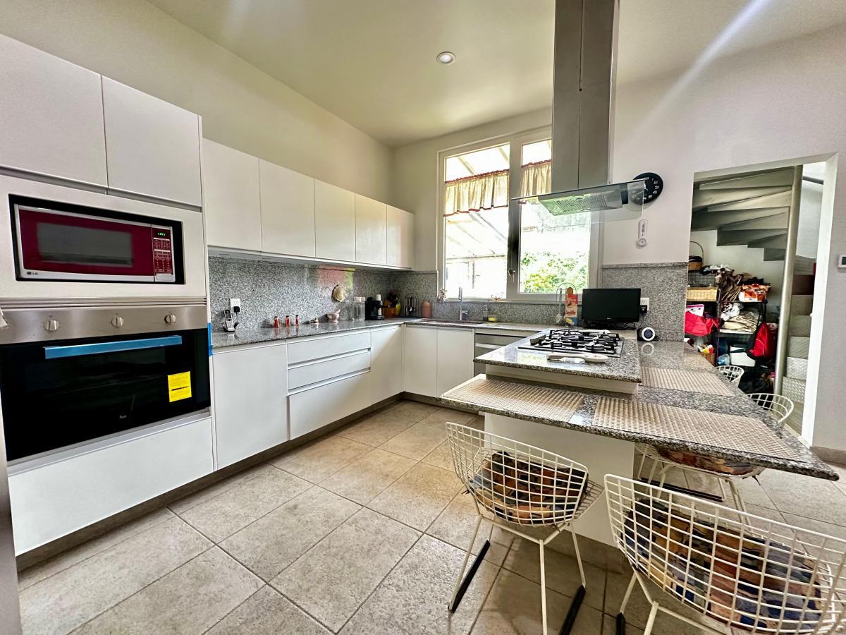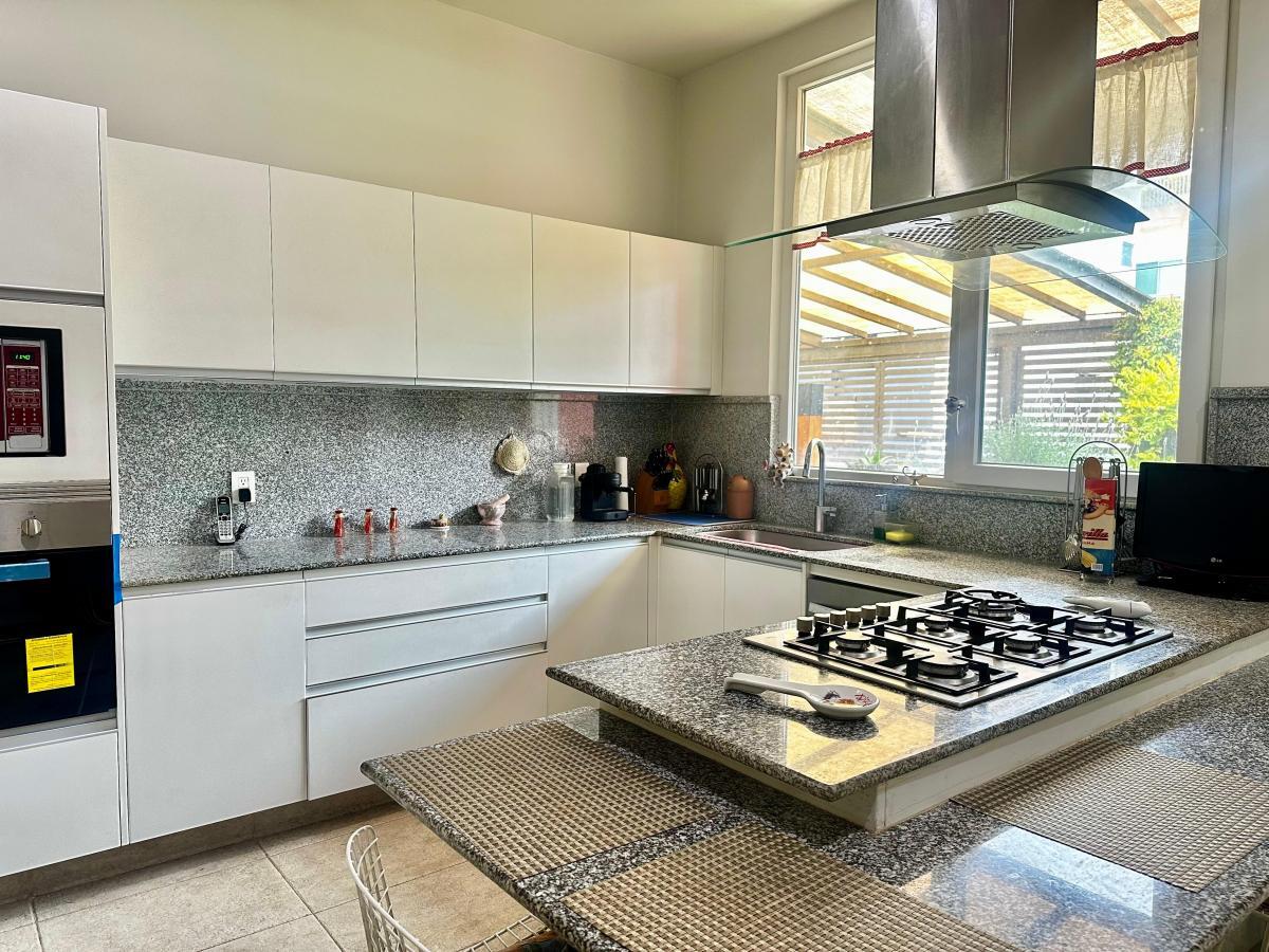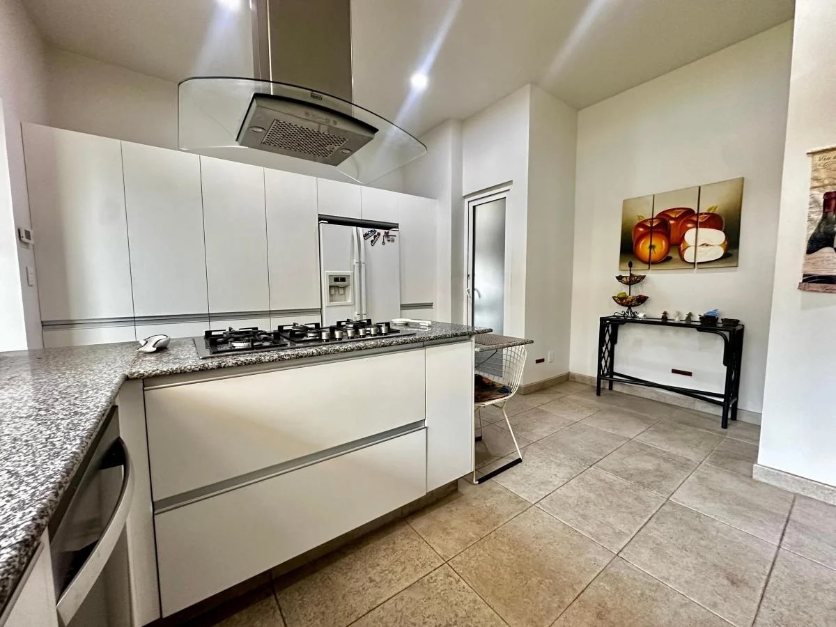 Al ingresar, del lado derecho se encuentra el área social con una espaciosa sala y comedor, ambos con acceso directo a la terraza y al jardín, perfectos para disfrutar reuniones al aire libre. A la izquierda, se ubica la cocina equipada con barra desayunadora, gran capacidad de almacenaje y acceso al área de servicio.
