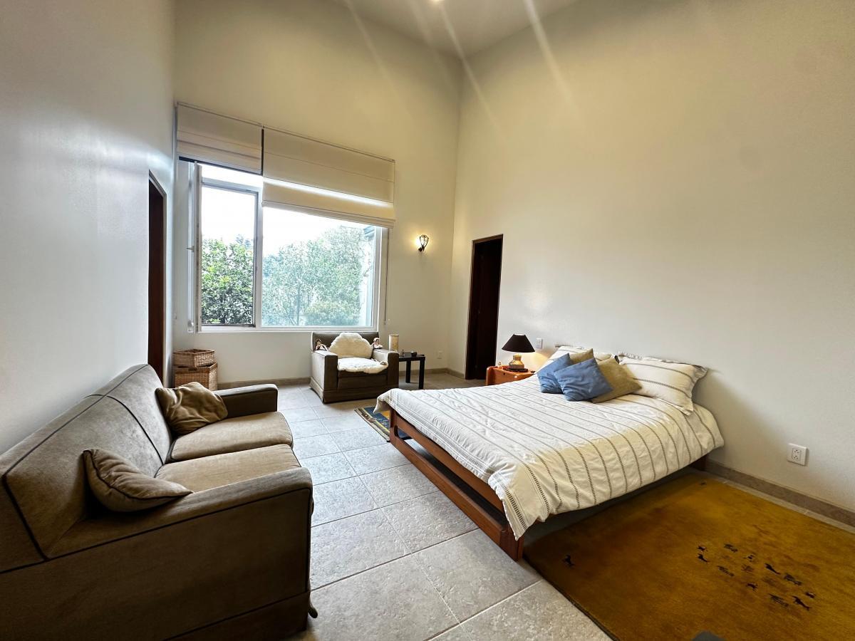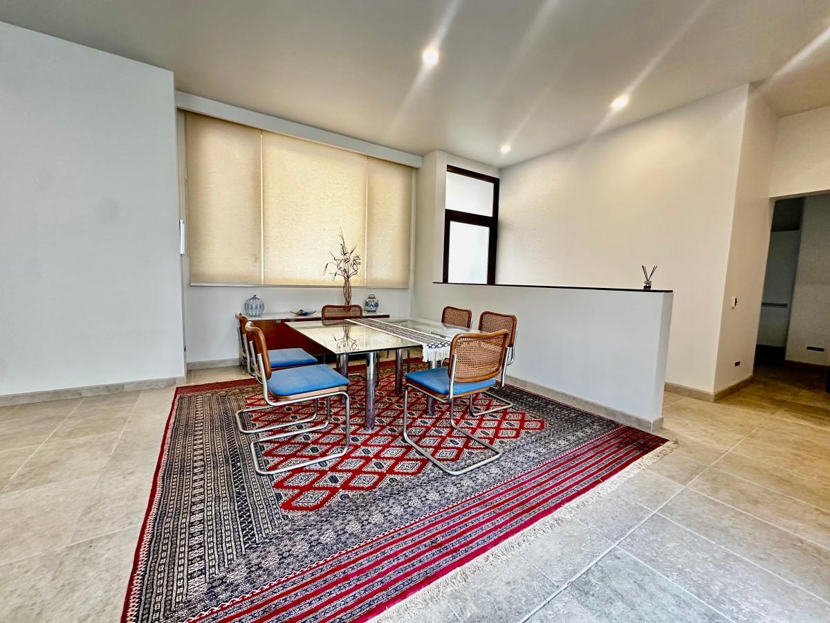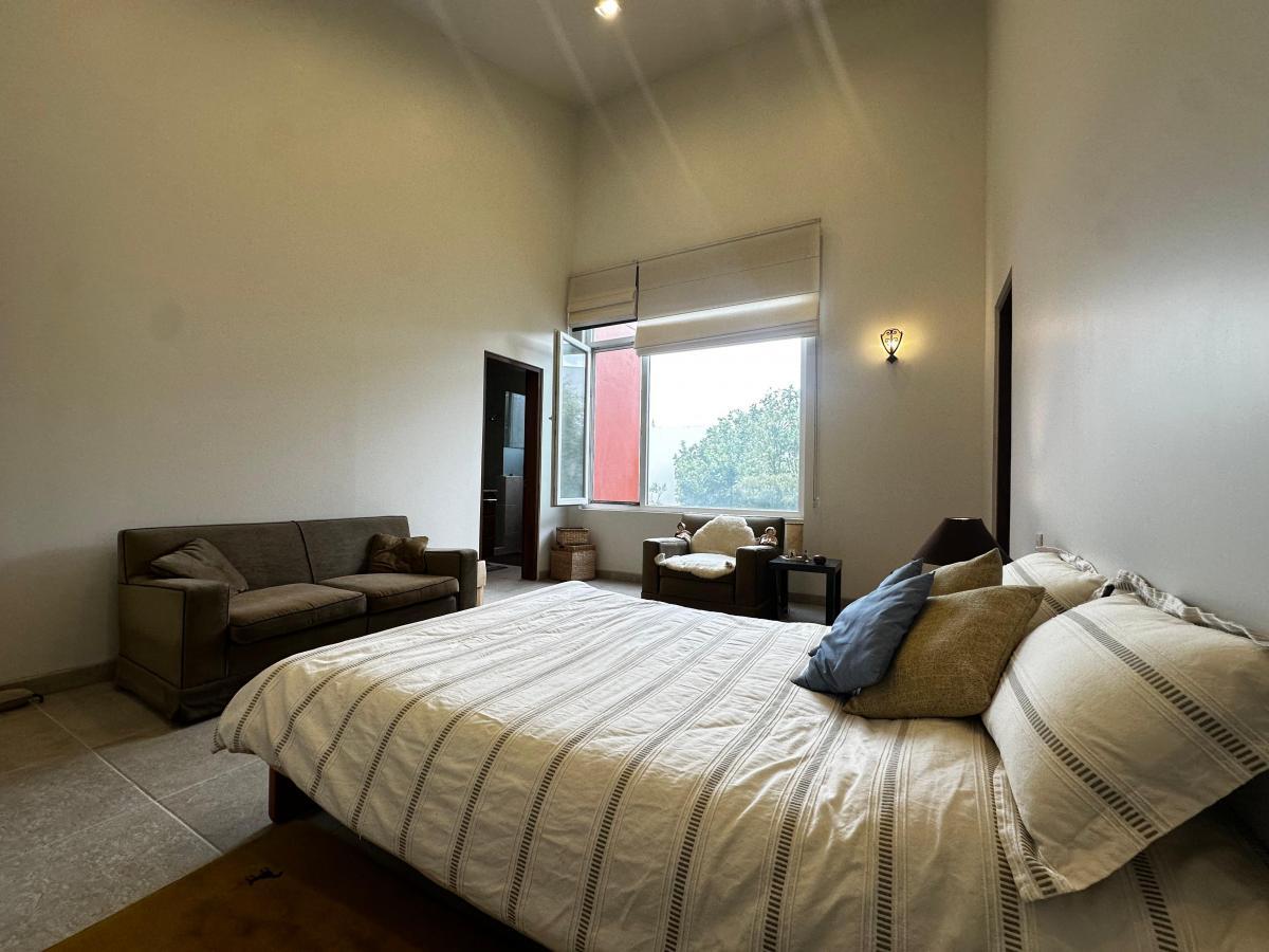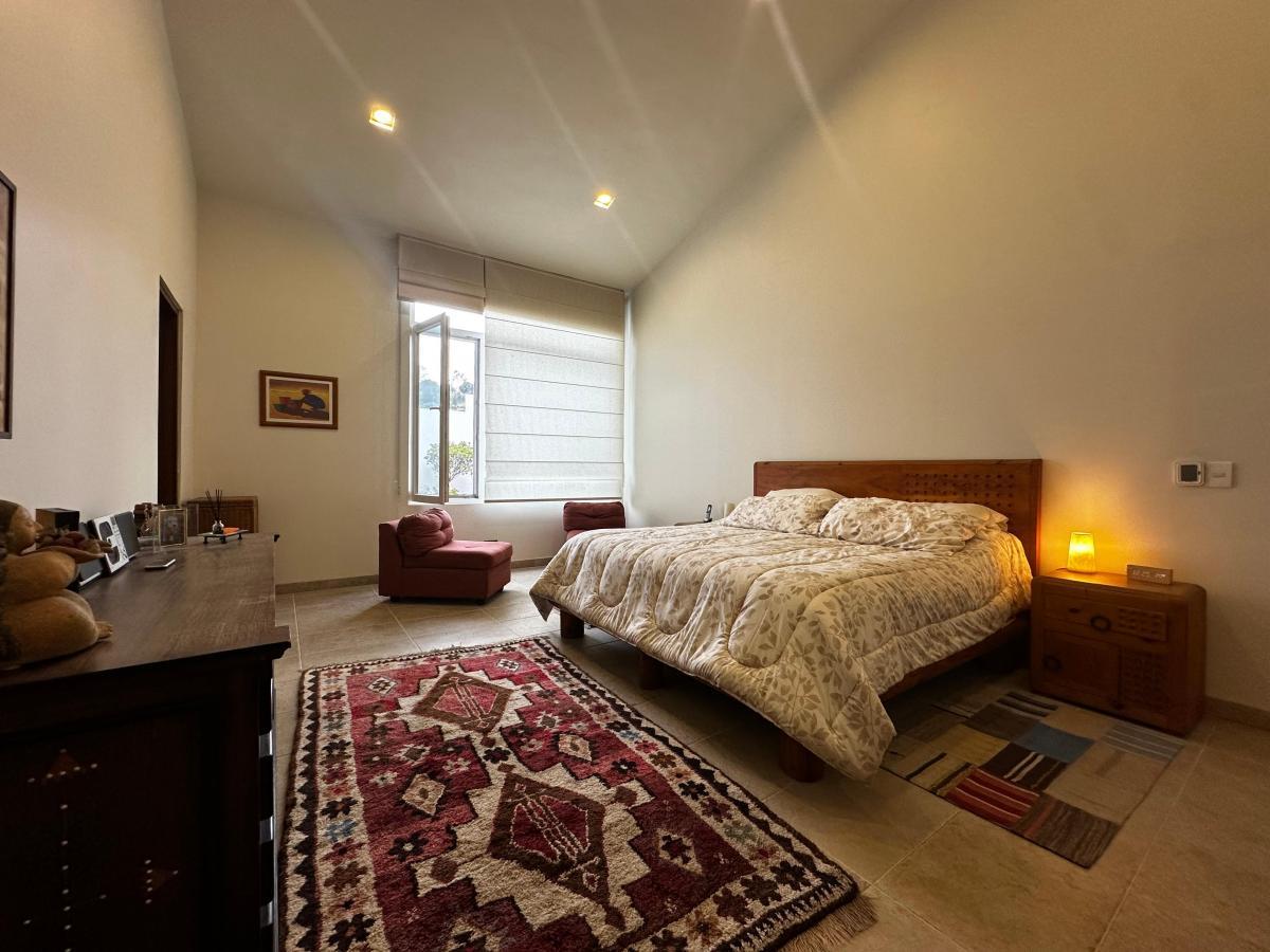 La casa cuenta con tres recámaras muy amplias, cada una con baño completo y dos de ellas con vestidor, ideales para el confort de toda la familia. Sus techos altos y ventanas permiten una excelente entrada de luz natural y una sensación de amplitud inigualable.