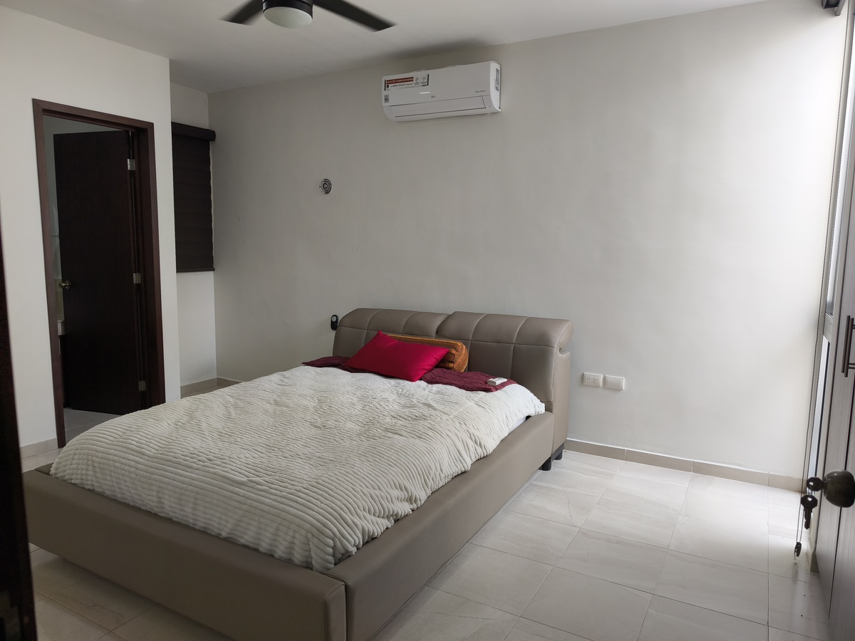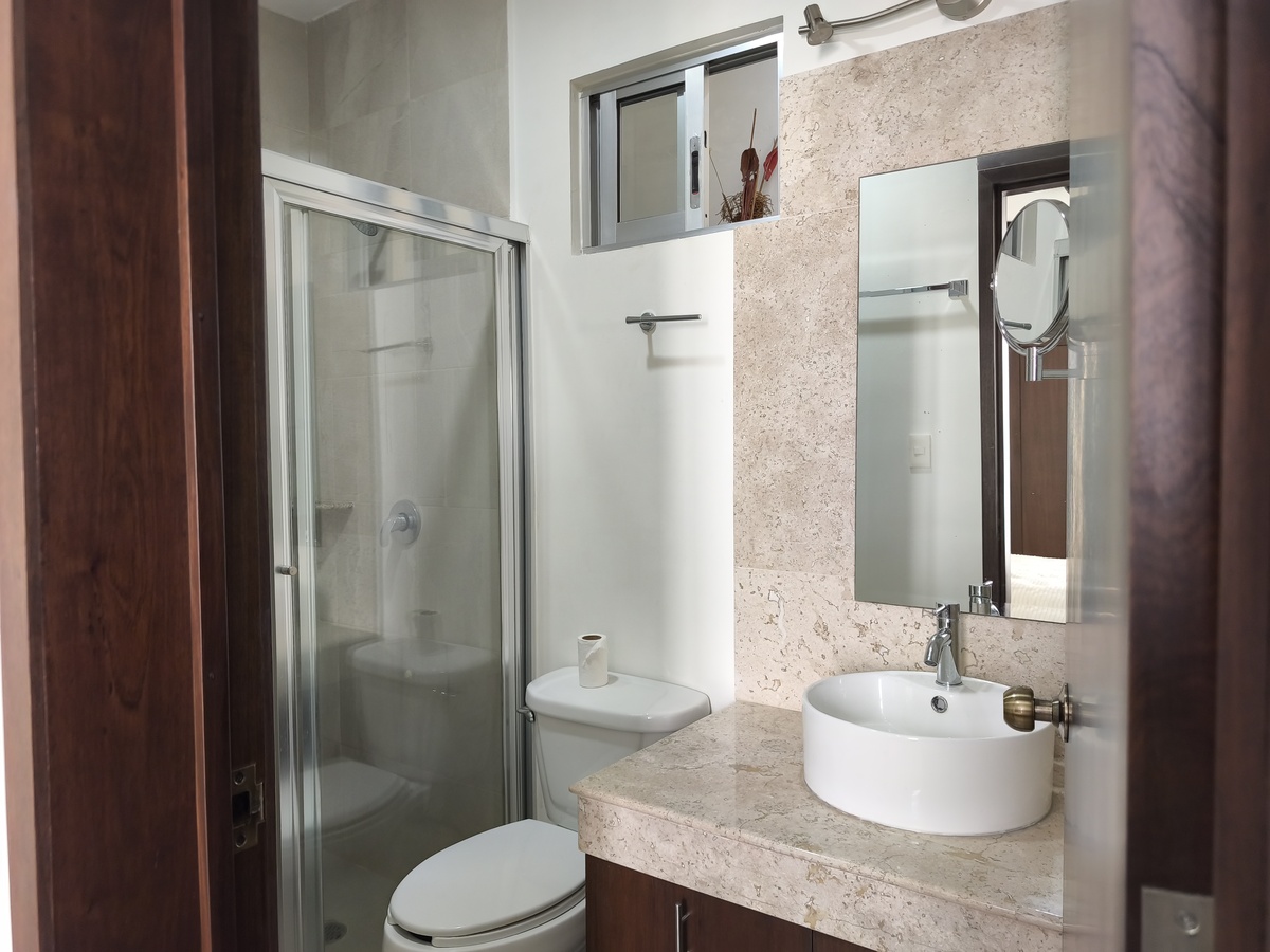 La recamara secundaria, cuenta con closet vestido de madera y su propio baño.