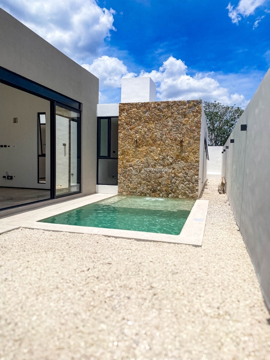 Casa en venta de una planta ubicada en una privada de 36 lotes residenciales a las afueras de la periferia de la Ciudad de Mérida, en el municipio de Conkal, Yucatán.
