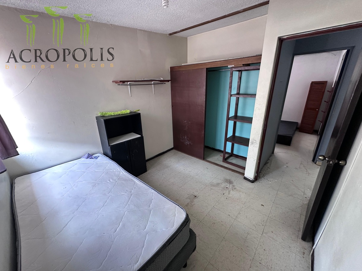 Casa duplex planta alta con 2 habitaciones con mueble de closet, 1 baño completo, sala-comedor, cocina y patio de servicio.