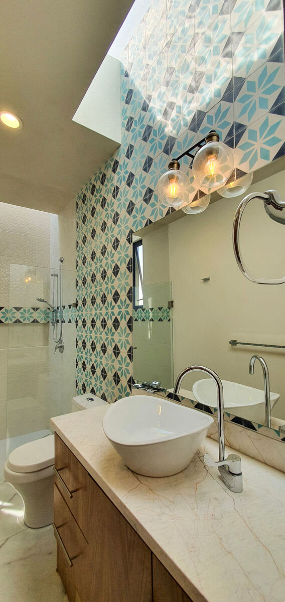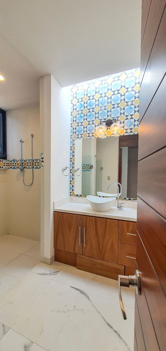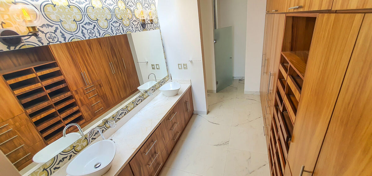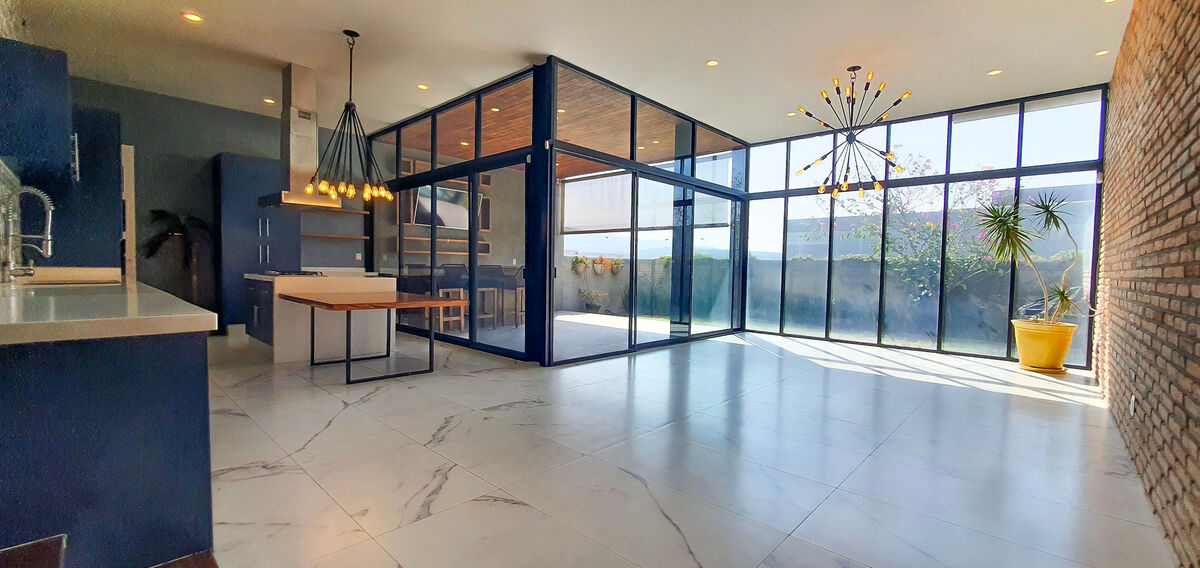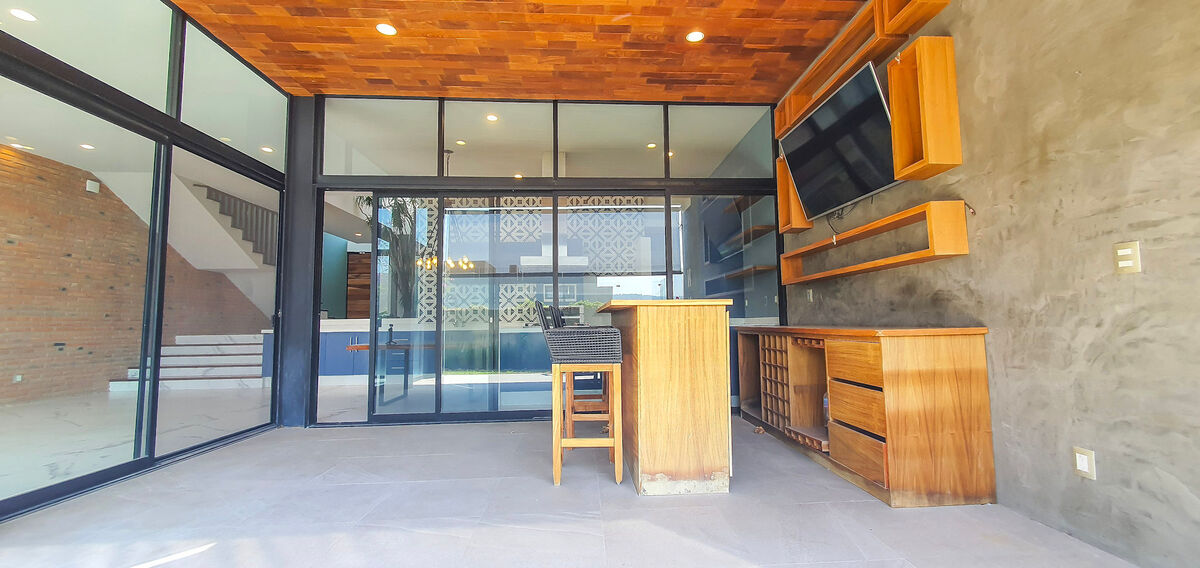 Casa con cocina completa, cuarto de lavado, árbol central interior y duomo eléctrico, jardín y terraza totalmente equipada con bar de madera y persiana automática.