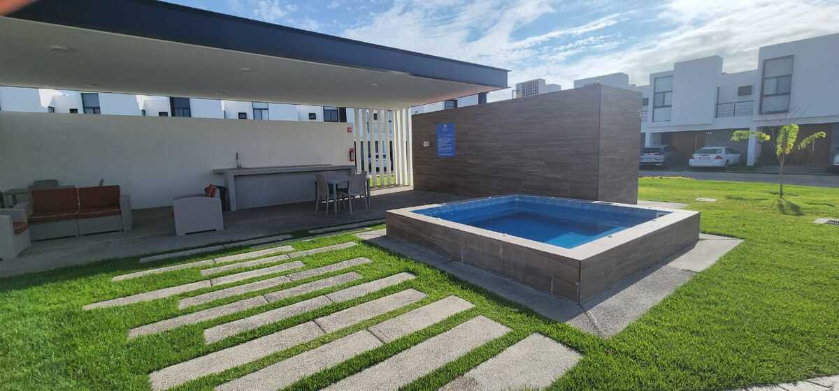 Bonuta y acogeroda casa en Renta.Amueblada, En conominio horizonral Corales 2 atraz centro comercial lago real frente rincon del cielo superficie 120 m2, 3 recamaras 2.5 baños ,sala comedor, terrazs, cocina abierta, area lavadora y secadora PANELES SOLARES, Aires y ventiladores, 2 autos, Alberca comun, palapa y Jacuzzi $24,000 mn
