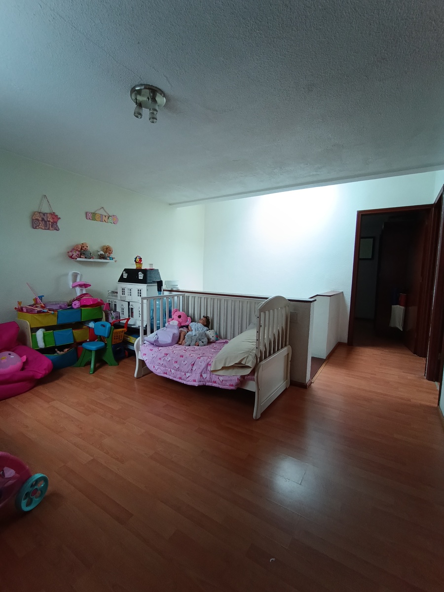 En la planta alta tenemos la sala de tv, la recámara principal con baño completo y dos recámaras secundarias que comparten un segundo baño.