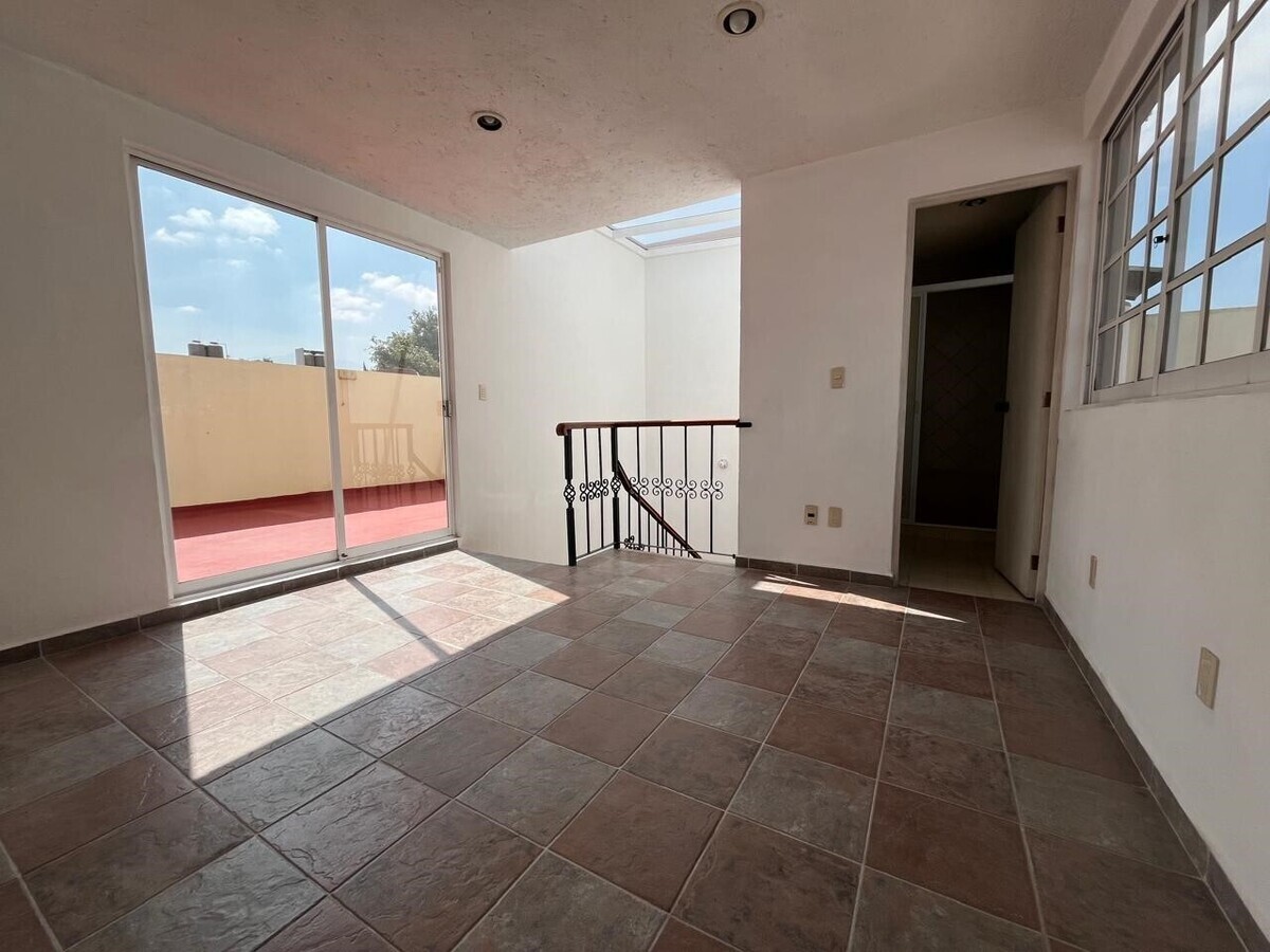 En condominio de solo 4 casas, con vigilancia, consta de amplia sala comedor, medio baño para visitas, cocina con espacio para desayunador y salida a patio de servicio, área de lavado, cuarto de servicio con baño; en planta alta tres amplias recámaras, la principal con vestidor y baño, closets de blancos y en el siguiente nivel family room con baño completo que si así lo requieres puede ser la cuarta recámara y además con salida a la terraza. Dos estacionamientos.