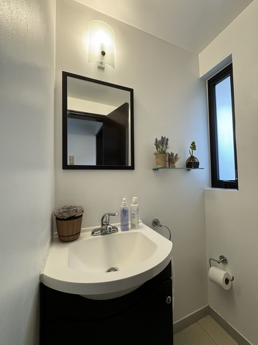 Baño completo que da servicio a las recámaras secundarias con ventilación natural
