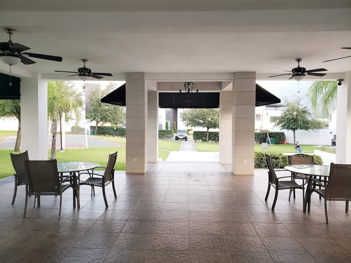 El jardín cuenta con una alberca, acompañada de un cuarto de bombas, una terraza equipada con asador, barra de granito y un medio baño adicional.