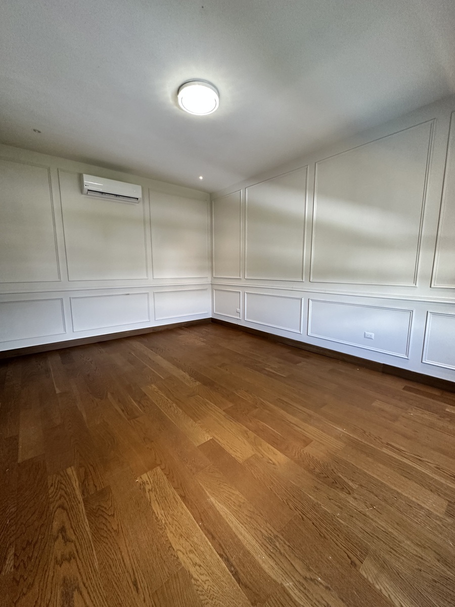 En el segundo nivel, una estancia con terraza se conecta a una amplia recámara principal, que dispone de un walk-in closet grande y un baño completo con tina. Además, hay dos amplias recámaras secundarias, cada una con su propio walk-in closet y baño completo.