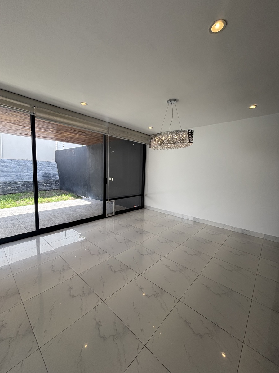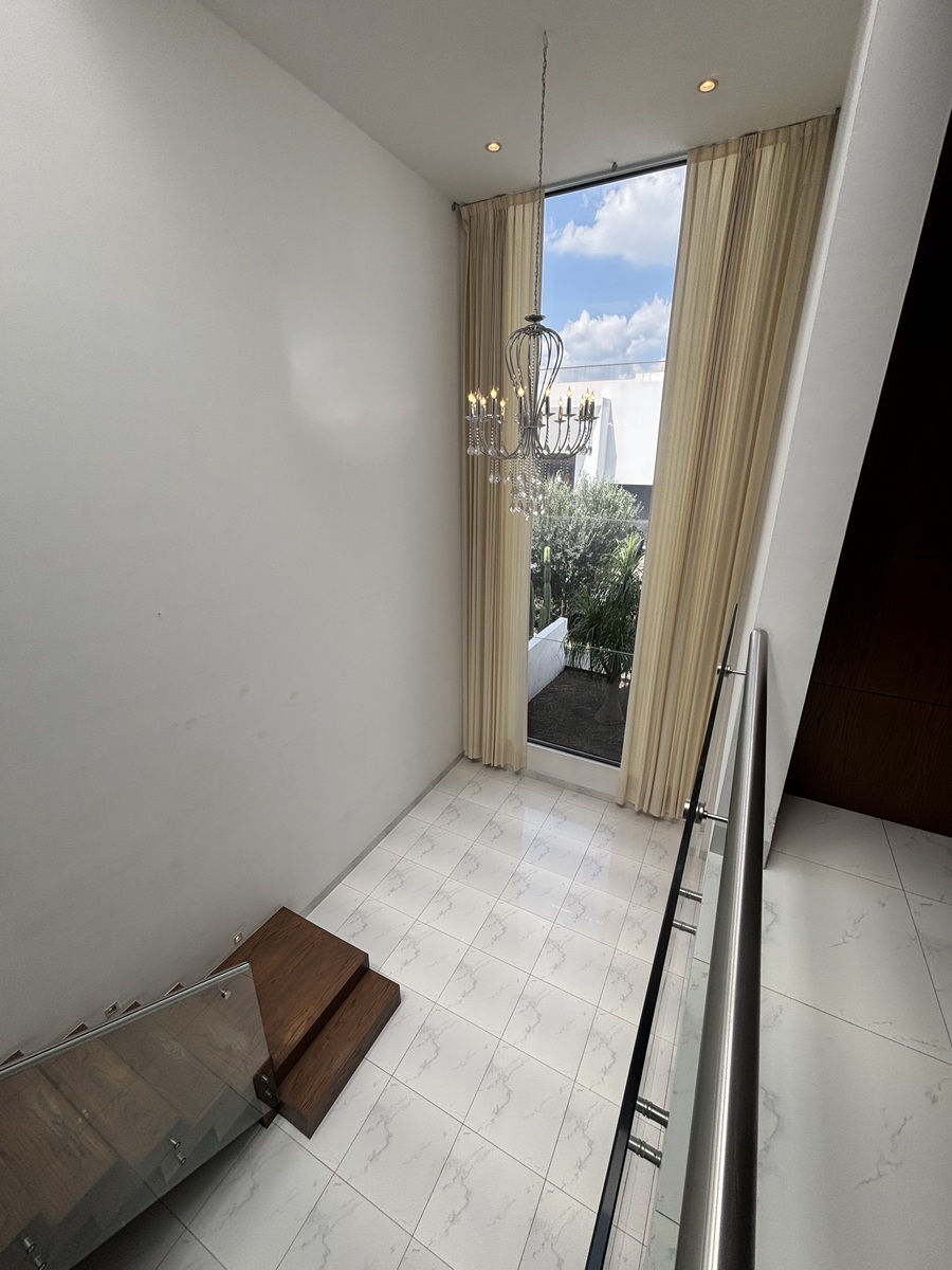 La casa tiene cochera para 3 autos techada, sala a doble altura, estudio en planta baja, comedor, cocina súper equipada, medio baño de visitas, terraza techada y jardín, recámaras y baño de servicio y cuarto de lavado.