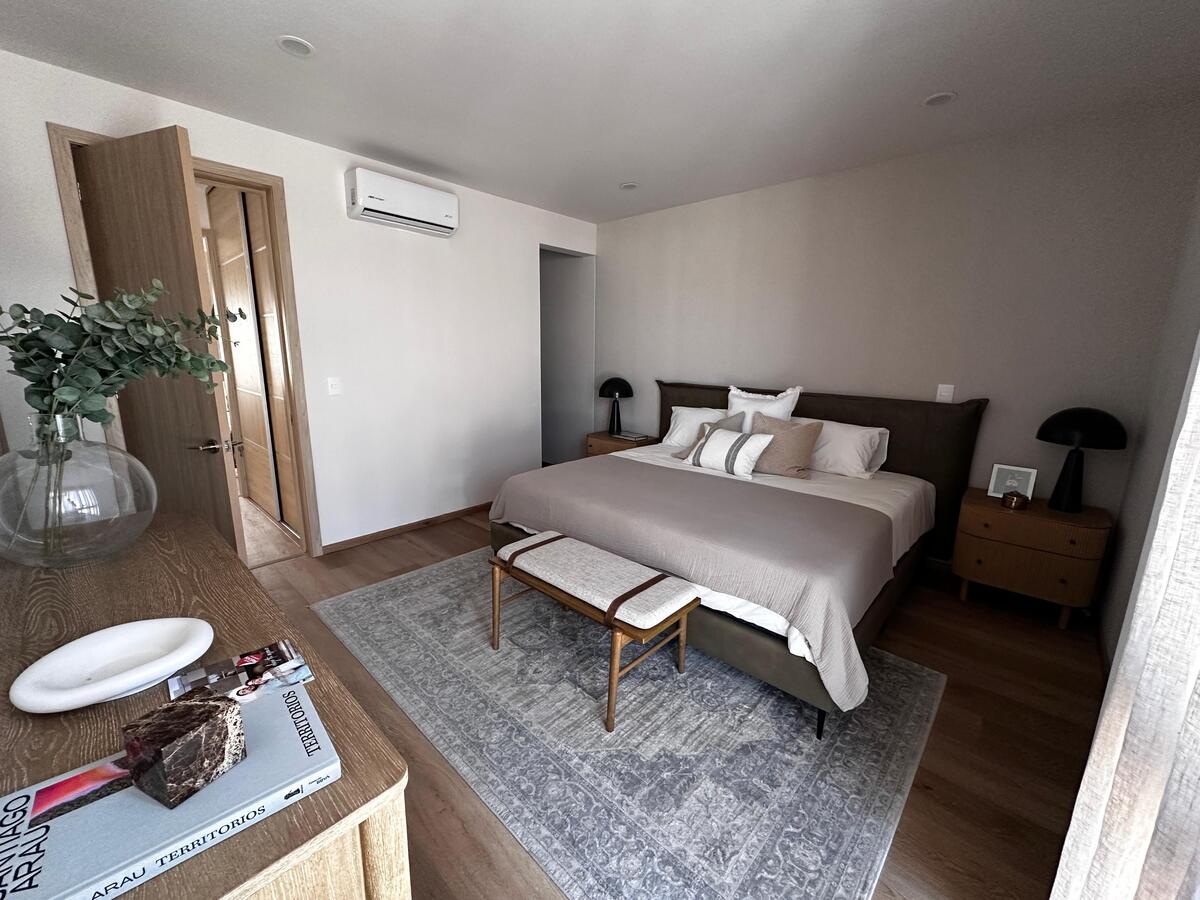 Cuenta con amenidades como: Gimnasio, terraza elevada, pet park, terraza social, juegos infantiles y alberca.