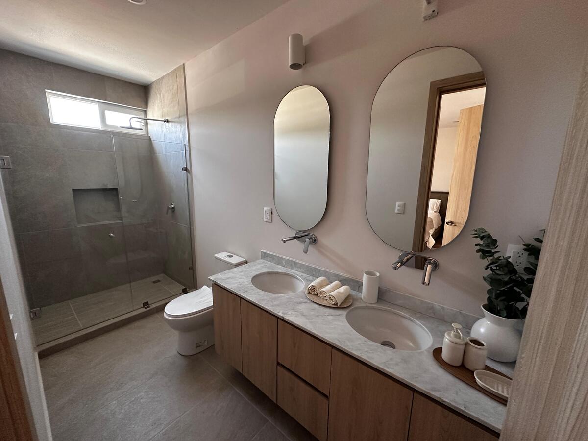 En la planta baja, disfruta de una cochera para 2 autos, sala-comedor, cocina con barra desayunador e isla, medio baño y un encantador jardín. En la planta alta, la recámara principal cuenta con baño completo y vestidor, mientras que las dos recámaras secundarias tienen baño completo y clóset cada una, además de un área de lavado. En el rooftop, encontrarás una cuarta recámara con baño completo y clóset, junto a una amplia terraza. Vive en un entorno seguro y familiar, con todas las comodidades y servicios que necesitas. ¡Tu nuevo hogar te espera en Residencial Madeira!