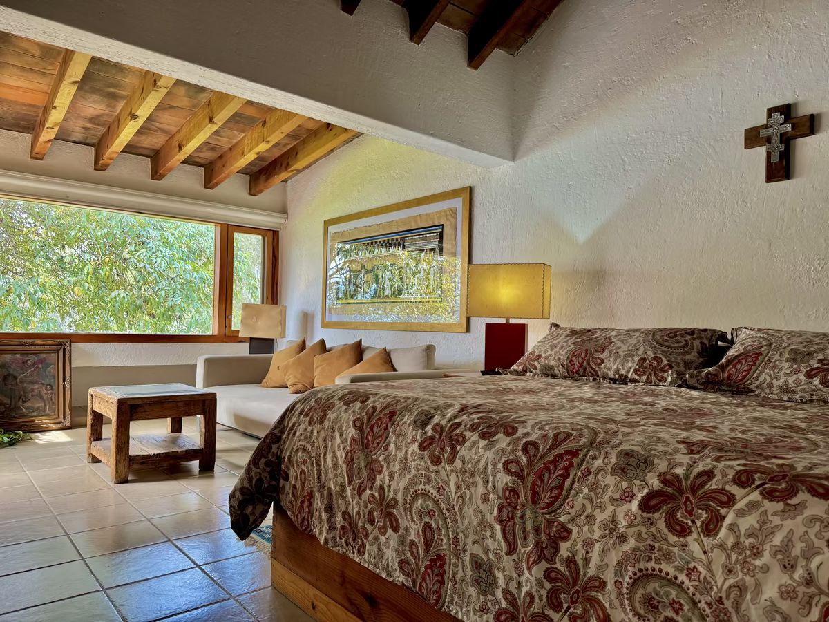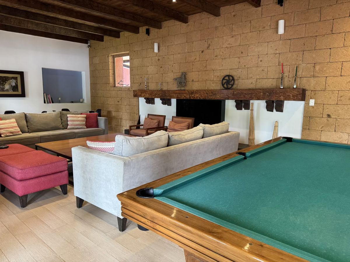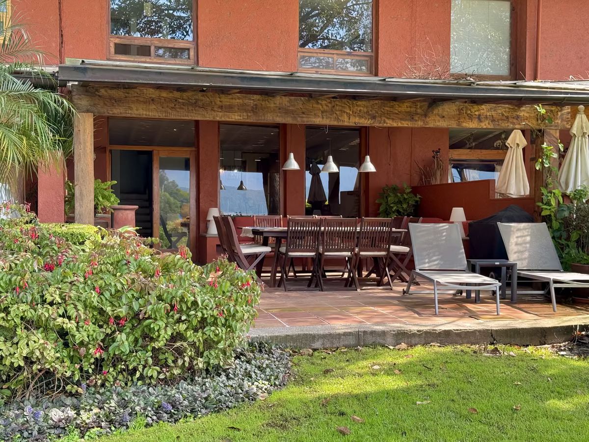 La casa cuenta con 4 recamaras todas con baño completo, la recamara principal tiene chimenea y balcon con vista al lago, estacionamiento para 2 autos, sala-comedor interior y exterior, chimenea, cocina equipada, cuarto de servicio.