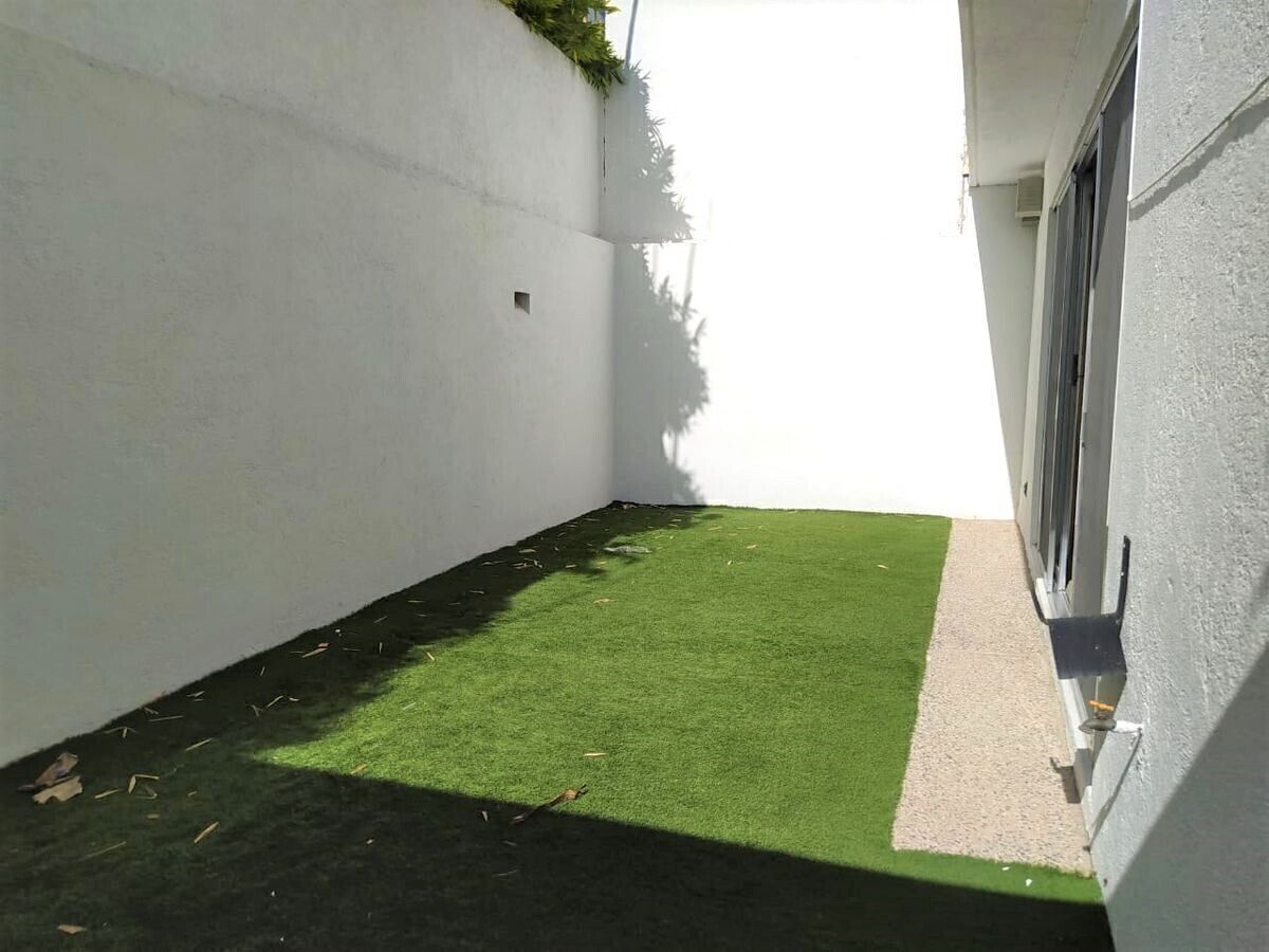 - Jardín con pasto sintético .