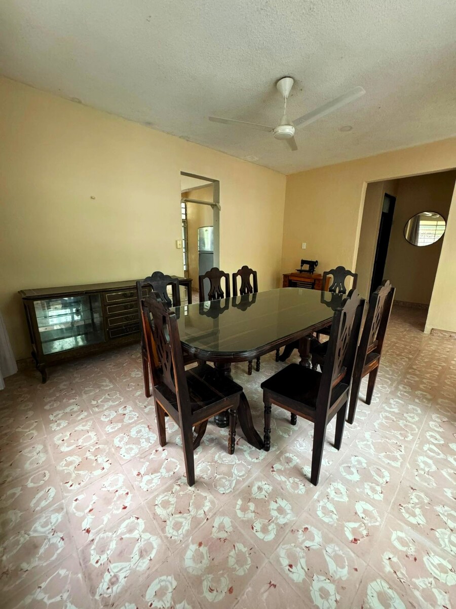 La casa tiene frente, terreno trasero amplio, pasillos laterales, lo que la coloca prácticamente en medio de la propiedad.