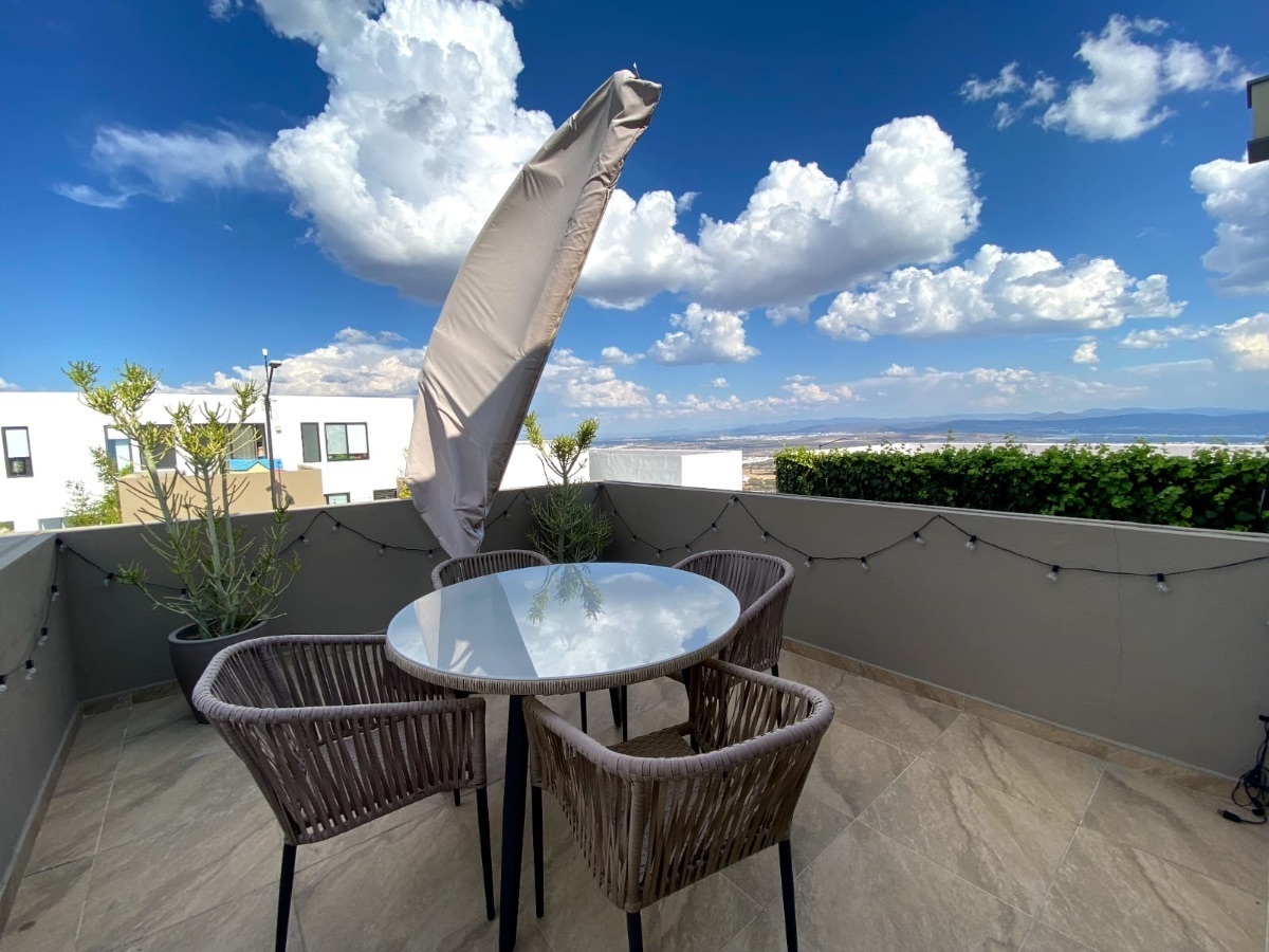 planta baja - cocina equipada - jardín - medio baño - sala/comedor - cochera para 2 autos (techada) planta alta - 2 recámaras - principal con baño completo - estancia - terraza - baño completo para segunda recámara