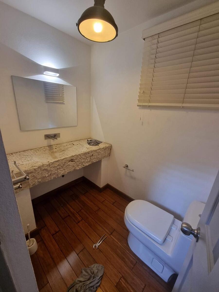 Planta baja Sala , comedor , cocina con barra para bancos , area de lavado y cuarto de servicio con baño
